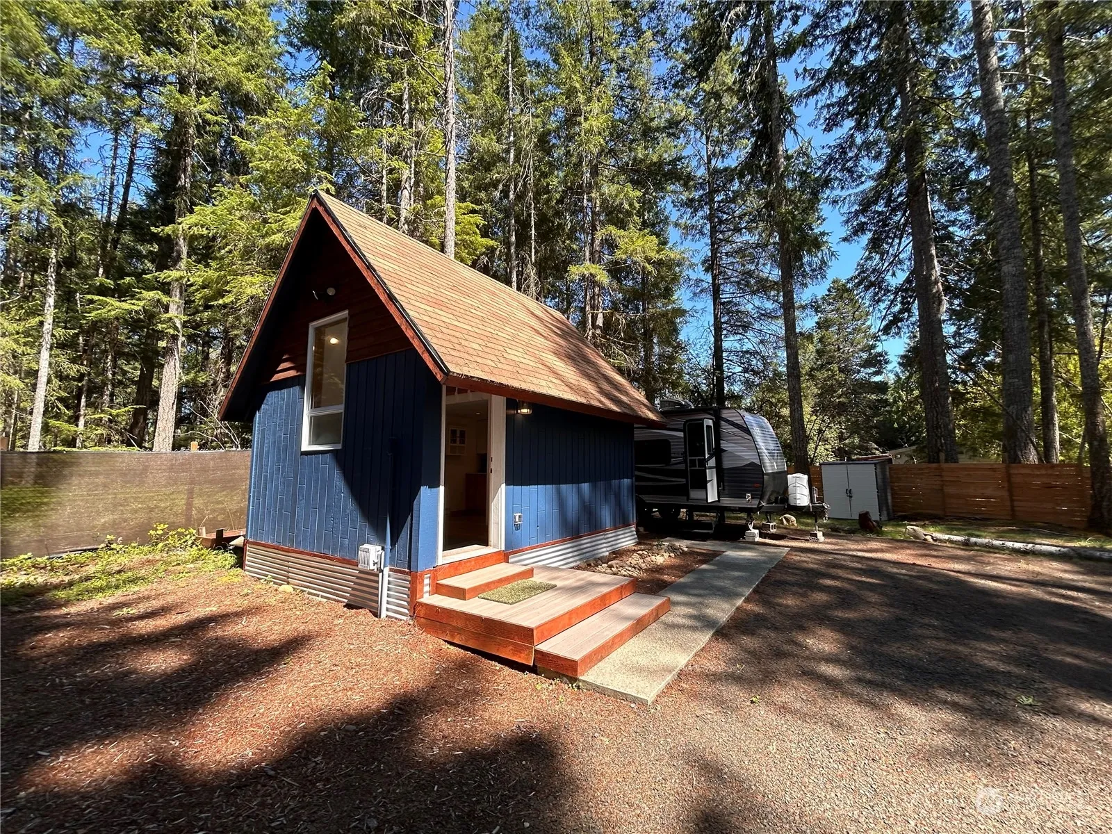 Nestled on a quiet cul-de-sac within an easy walk to picturesque Lake Kokanee in Lake Cushman Community. The fully fenced property features a charming cabin with a sleeping loft, bathroom, & kitchen. 2 hookup spots for RVs, 2-bedroom septic system & community water. Enjoy relaxing in & around the outdoor kitchen under a gazebo w/projection screen or gather around the fire pit. This is a turnkey escape but can be full-time RV living which is allowed or you can build. This vibrant community offers access to 2 lakes for kayaking, canoeing, & fishing, along with hiking trails, biking, playground, golf course, disc golf & nearby dog park. WiFi(fiber optic), 1 mile to Cushman Store, 2 miles to Hoodsport & Hood Canal. Relax or adventure here!