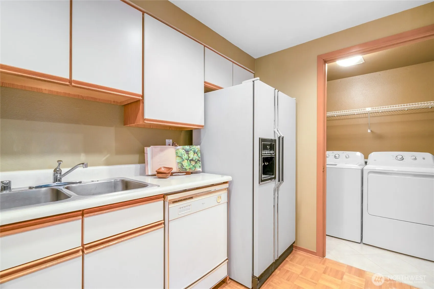 $20K PRICE IMPROVEMENT! Charming 1-bedroom, 1-bath condo offering easy single-level living! Open layout with spacious primary bedroom and extra closet space. Kitchen includes all appliances, plus in-unit utility room with washer/dryer. Relax on your private patio or enjoy the secured garage with assigned parking. Low HOA dues cover W/S/G. Just minutes from shops, dining, the Burke-Gilman Trail, and some of the best local breweries, this home is all about convenience and lifestyle. Whether you’re a first-time buyer, downsizing or just want a cozy city hideaway, this condo checks all the boxes!
