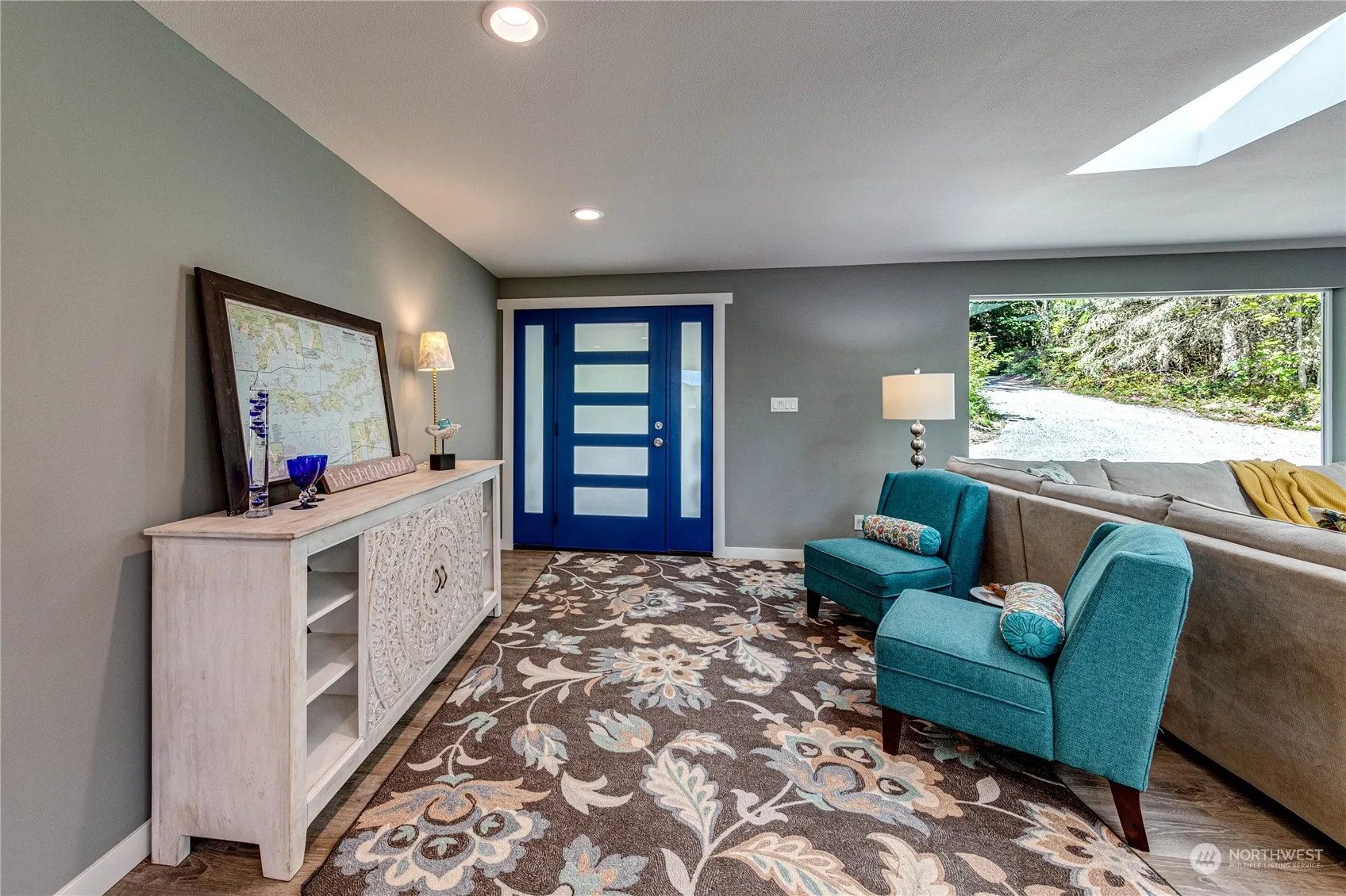 Close in yet serene and secluded. This Sequim Bay Rambler is nestled on 1.5+ acres of treed property with a seasonal creek. Step onto 400 sq ft of trex deck and watch the seals swim by. This 3 bedroom 2 bath plus Office has been remodeled inside and out: brand new roof, composite shingles, hardi plank siding, insulation, electric, an updated and current septic system, well pump and an engineered drain system preserve your medium bank waterfront home. New skylights and windows keep it light and bright. New paint, appliances, cabinets and quartz countertops set off the spacious open living area. Watch the sailboats from 141’of Bayfront views minutes from Sequim shopping, Marina, Discovery Trail, Casino and State Parks.