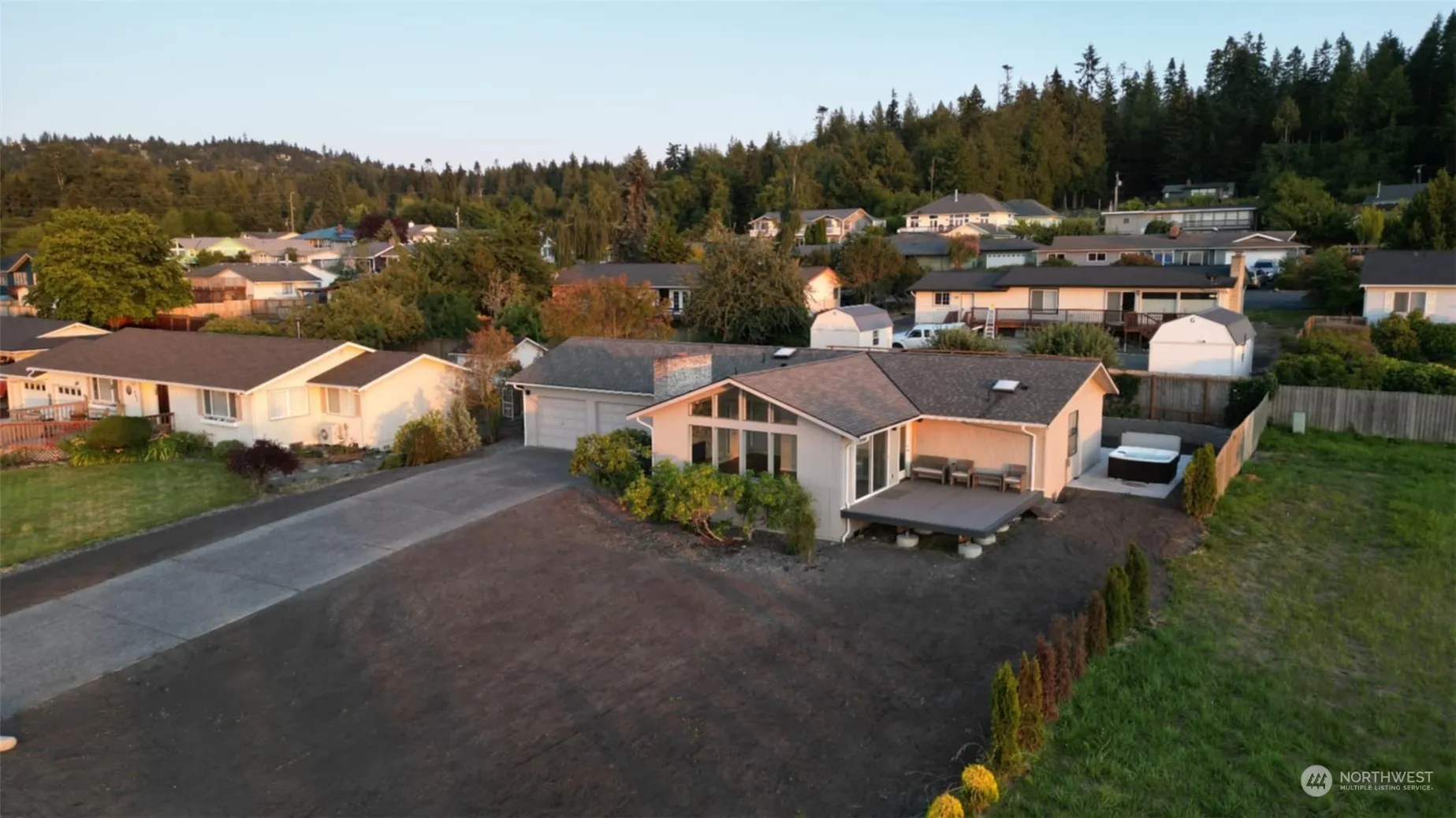 Remodeled 3-bedroom home with great views and a long list of recent updates. Improvements include brand new Trex deck, concrete patio, rock wall, gutters, and hot tub. Interior remodel includes new flooring throughout, trim, doors, paint, and electrical. Updated primary bathroom features brand new tile shower, tile flooring, and quartz vanity. Lots of sunny exposure in the south-facing back yard. Saltwater and mountain views combine with amazing sunsets, quiet location, and lots of character. Close to town and move-in ready!