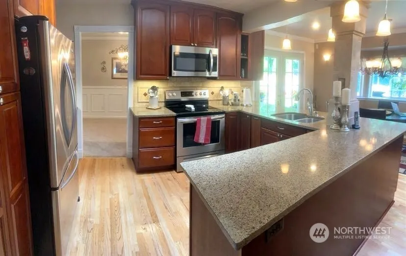 You will feel right at home in this remodeled 5 bed/3 bath Tri-Level gem. The private and colorful back yard offers endless enjoyment. This spacious home in the coveted Dumas Lane/Mill Creek location is move in read with a new presidential composition roof(35-50year), new exterior paint in 2017, a new hot water tank in 11/2023, a new composite porch, a 2013 remodeled kitchen with granite slab countertops/stainless appliances, a new addition in 2002(kitchen nook/rec room/2 bedrooms/lower level food storage), hardwood flooring, a covered wood deck, back yard garden, shed, and wood/link fencing. The home backs to Jackson High School with large privacy trees separating the two. Motivated Sellers.