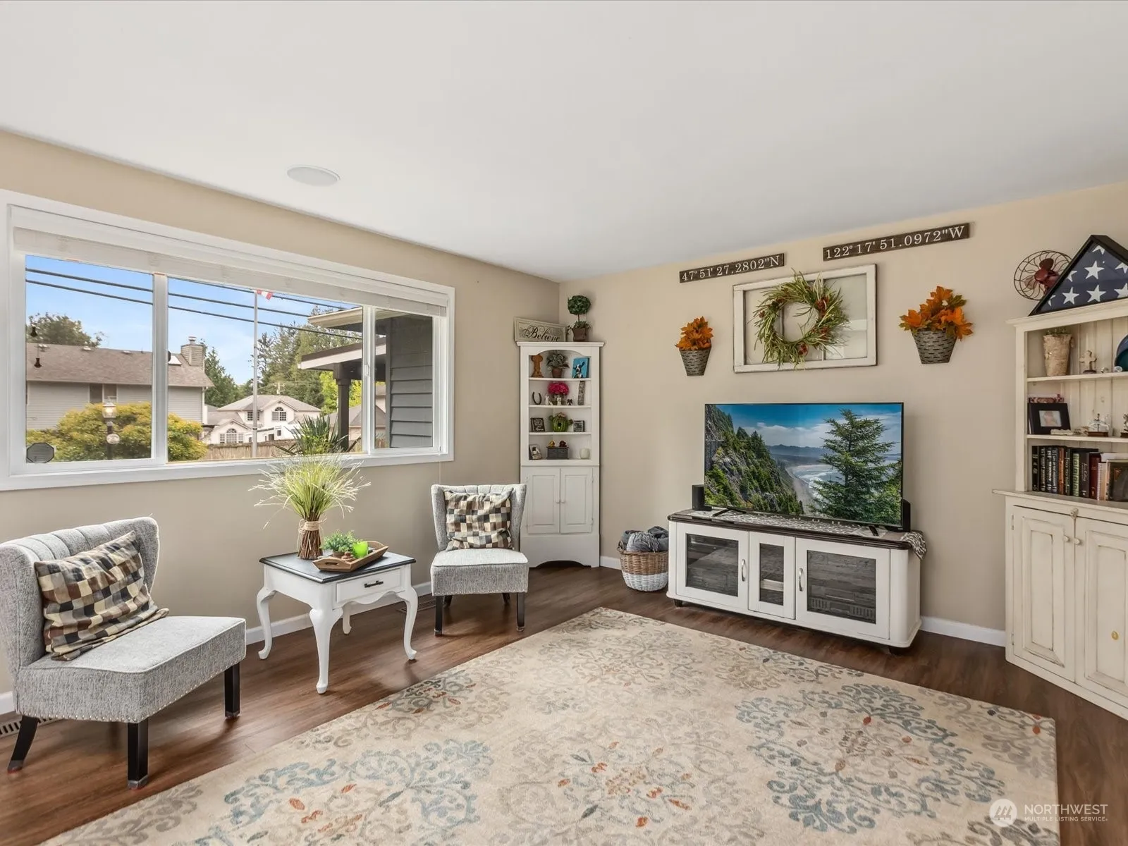 Beautifully updated Rambler! This 3 bedroom 1.75 bath home sits on a generous fully fenced .29 lot with gravel pad for RV parking, 50amp outlet and electric gate. New kitchen has plenty of counter & cabinet space, quartz counters and opens to family room w/ fireplace and dining room. Primary bedroom has slider out to back deck w/ hot tub, fireplace and TV. Additional detached flex room w/ additional storage can be used as a studio, office, workshop. No HOA, Edmonds school district, min to freeway, shopping and entertainment.