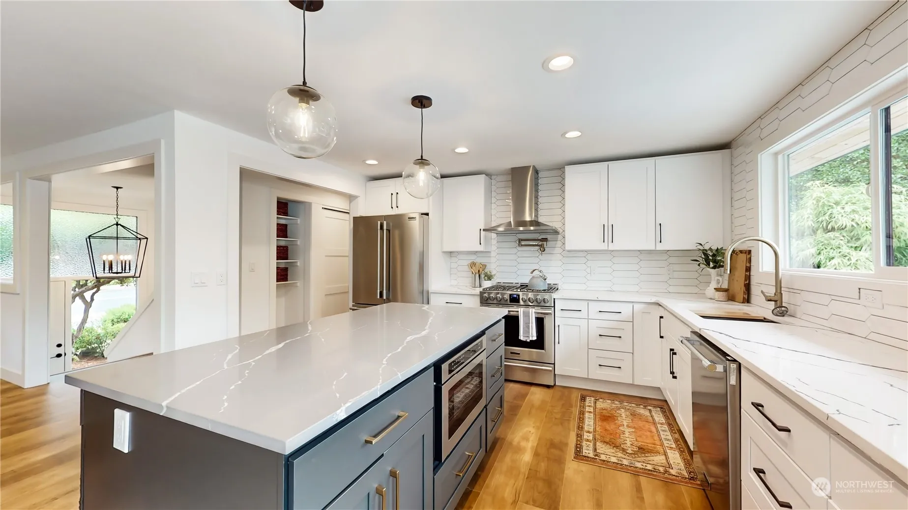 Welcome home to this entertainer’s dream. Complete remodel including new electrical, furnace, tank less water heater and pool equipment. Classic split level reimagined w/massive rooftop deck and modern finishes throughout. 4 beds with bonus/flex room and 2.5 baths. Bright, open concept flows nicely from room to room. Daylight basement has separate entry and kitchenette space for generational living or MIL. Large patio opens to huge in-ground pool for entertaining and enjoying the beautiful Seattle summers. Large corner lot w/ attached 2 car garage, plenty of extra parking and privacy. Easy commute with quick I-5 access. Don’t let this one pass you by.