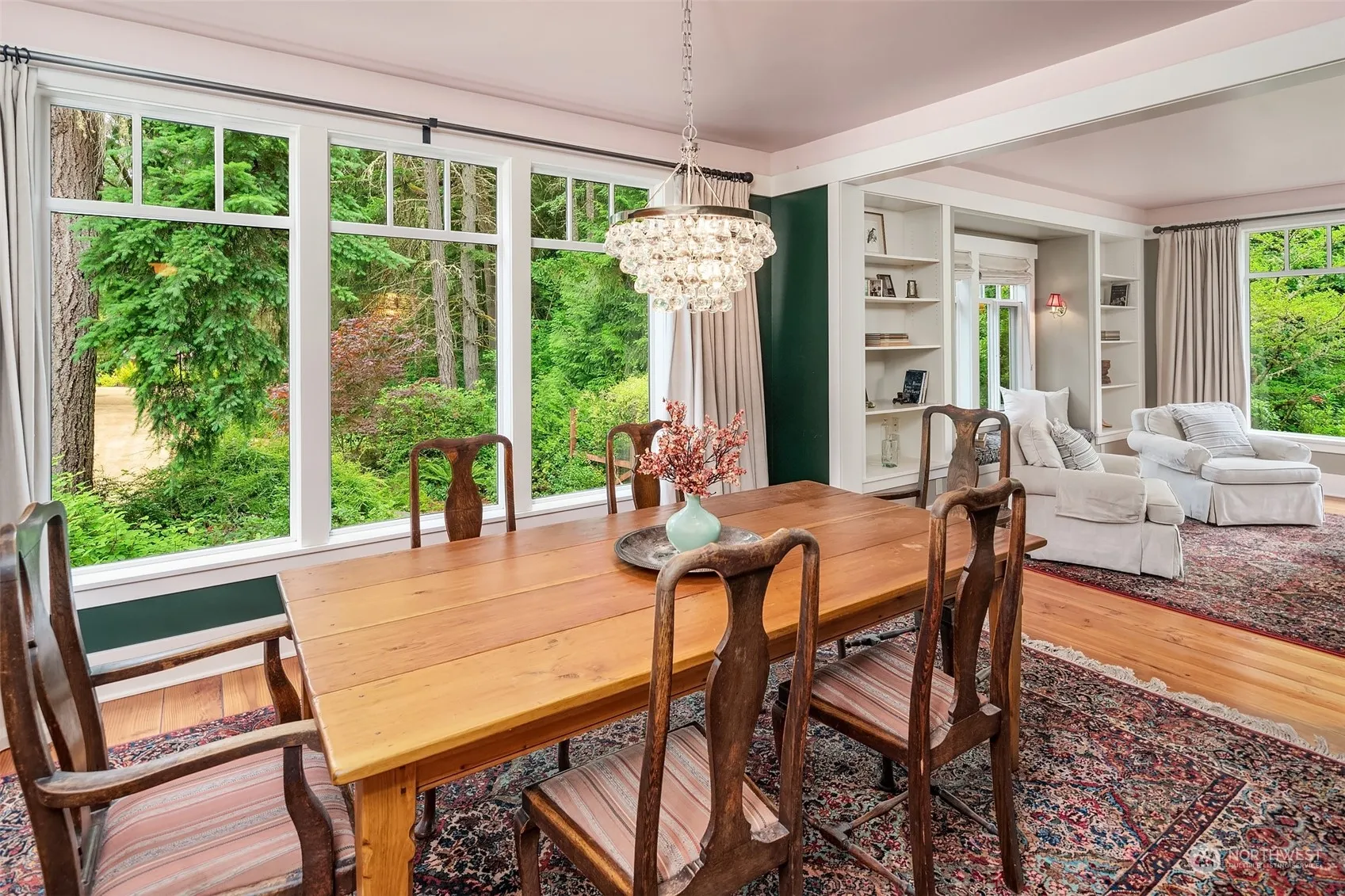 First time on market! Beautifully situated down a quiet, private lane surrounded by peaceful woods, find a custom-built, well-maintained home of exceptional quality & countless thoughtful touches. More than 4000 sq/ft w/ tall ceilings, eat-in chef’s kitchen, formal dining room & spacious living room w/ cozy built-in window seats. The 2nd floor features the primary suite with south-facing balcony, plus 3 bedrooms – all w/ walk-in closets & lofts. The roomy daylight basement, w/ private entrance, is semi-finished w/ a 3/4 bath & kitchenette. Over 2 level ac. of fenced, mature landscaping includes fruit trees, flower gardens & lavender which will deliver year-round beauty. 1,500+ sq/ft garage w/ unfinished 2nd floor loft. A rare gem of a home!