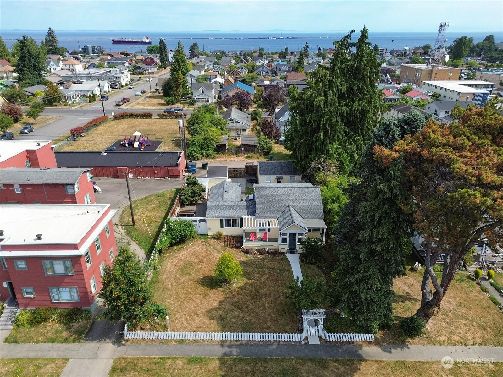 This Cherry Hill property boasts contemporary upgrades while preserving the timeless characteristics often seen in homes of this period. A delightful white picket fence with an arbor, an inviting front porch, and well-established landscaping welcome you. It features a cozy living room complete with built-ins and an electric fireplace, as well as a spacious family room. Main floor primary suite, a formal dining room with extensive built-ins and a breakfast nook off of the kitchen. Additionally, there is a one-car attached garage with extra workshop space, a semi-enclosed carport, and an extra parking pad suitable for an RV, boat or trailer. Raised garden bed; sitting area with pergola; Apple, Pear and Fig Trees; Bay leaf; and Raspberries.