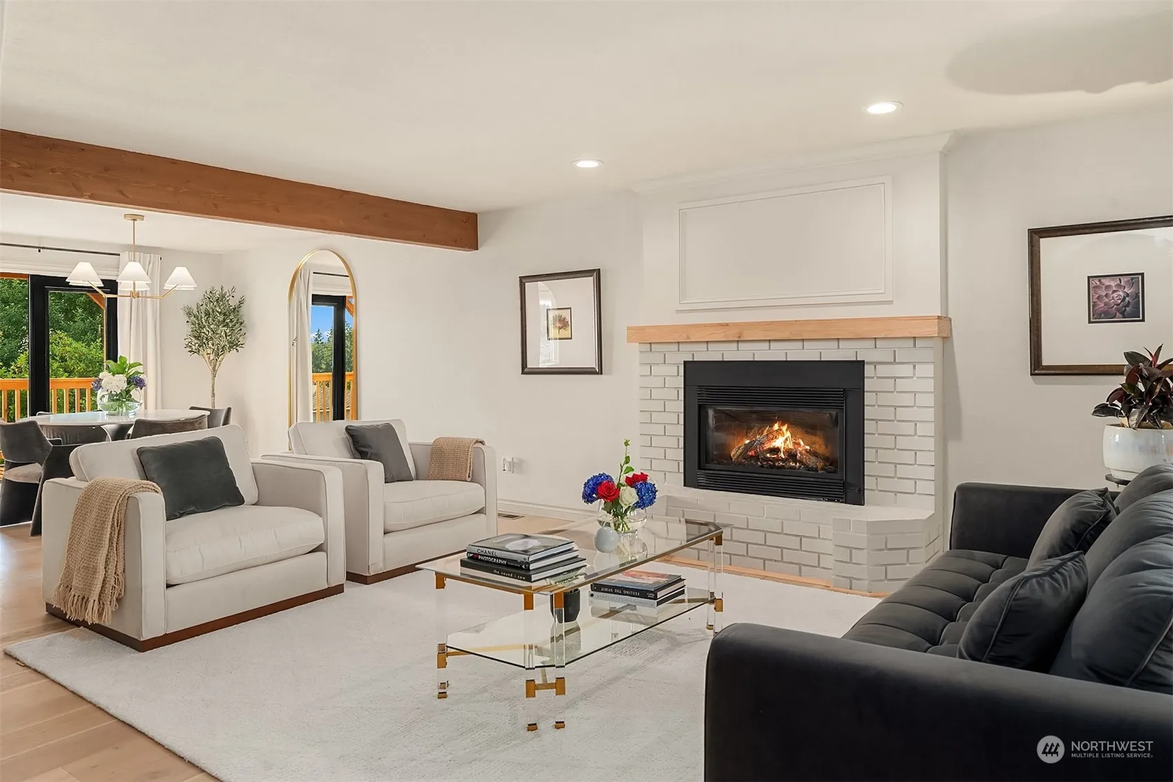 Welcome to a re-imagined home in the heart of UNIVERSITY PLACE SCHOOL DISTRICT. Updated & move in ready condition w/ living, dining and den/office plumbed for sink. Open island kitchen w/ quartz waterfall edge; opens to family room w/ fireplace & nook; tasteful tones & tilework; stainless appliances w/ gas cooking. Upper level hold unique bedrooms; hall bath & oversized primary bedroom; w/ vaulted ceilings; FIREPLACE and WALK IN CLOSET & statement soaking tub. Large oversized entertainment patio of pavers; HUGE LAWN w/ sprinkler system; new windows; new siding; new tankless hot water; A/C; Sunset drive is known for its established home sites; yard sizes and schools. Proximate to UP TOWNE CENTER and Chambers Bay. Home Warranty Incl.