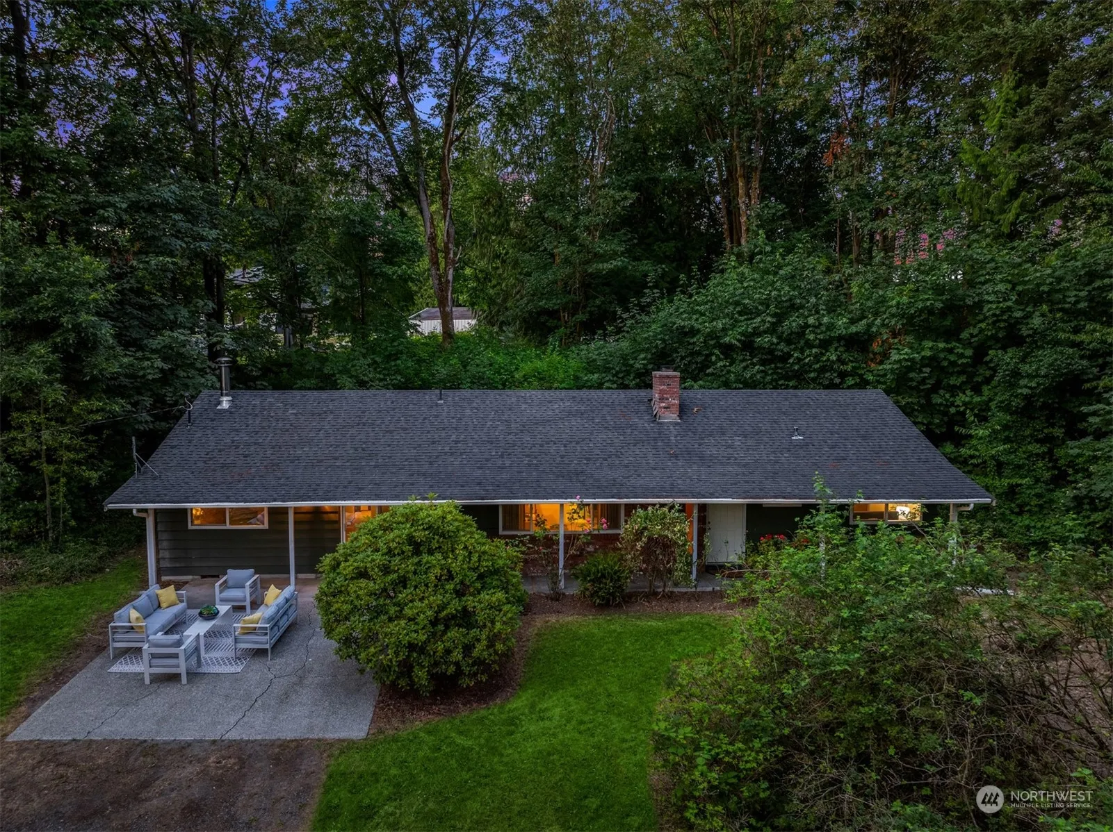 Experience the idyllic beauty + tranquil lifestyle offered by this Enumclaw property. Located on an expansive + wooded lot, the home provides the perfect combination of comfort + serenity. Inside, mid-century touches enhance the appeal of the spacious open-concept layout. Two living rooms, both with fireplaces, provide options for entertainment or quiet relaxation. New carpeting + abundant natural light freshen the spaces. Dining room opens to secluded patio. Four bedrooms, including guest room thoughtfully separated from other areas. Abundant storage options. New water heater offers peace of mind. Detached two-car garage. Explore nearby parks, trails, lakes, skiing + charming downtown.