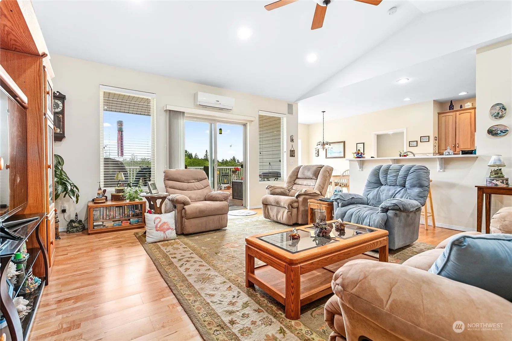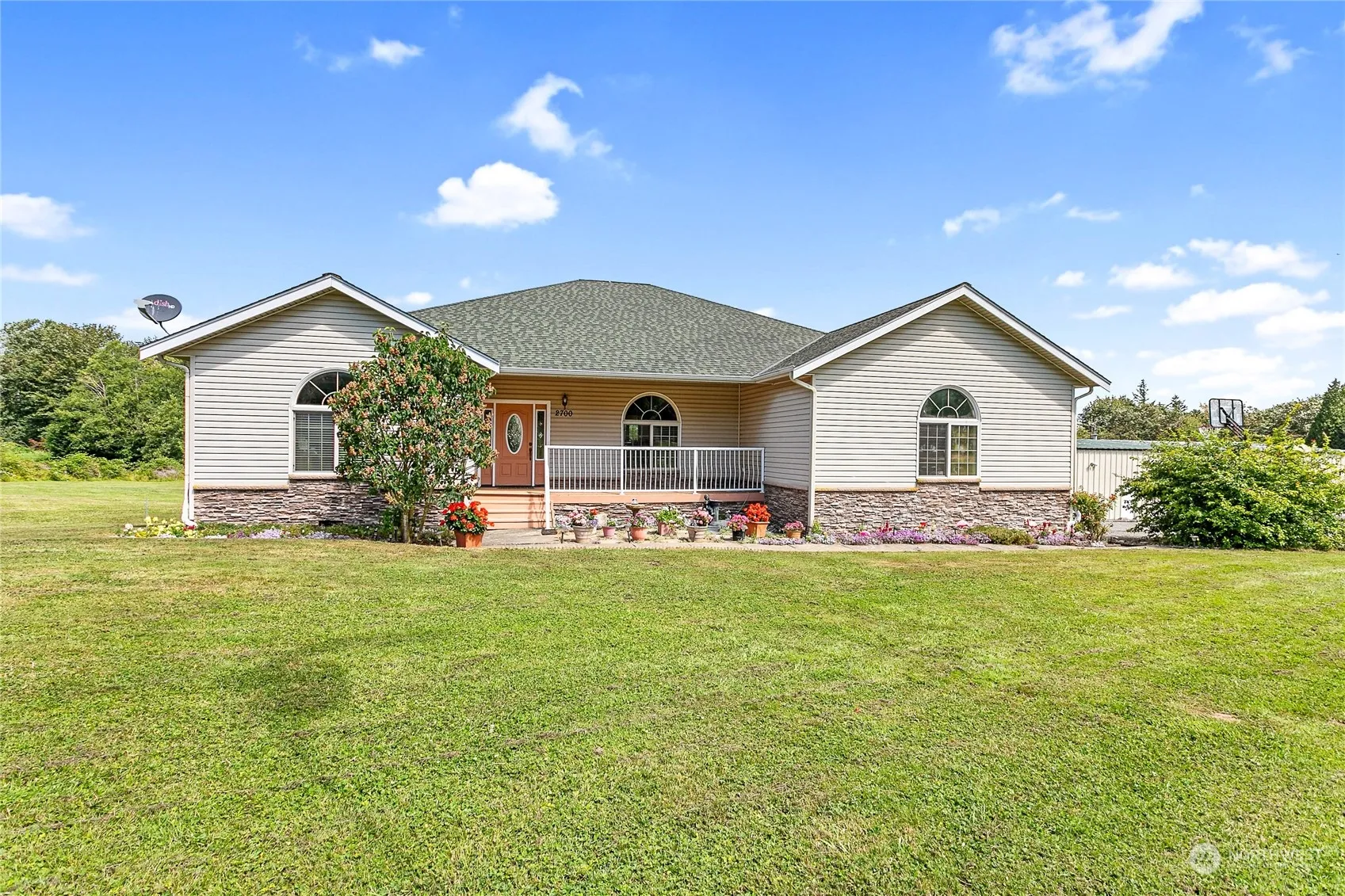 A single level, custom built home on nearly 5-acres peaceful setting, 4-bedroom + den, 2.75 bath, open floor plan, a great room with a patio door to a over 800sf large deck overlooking the open field with matured fruit trees. Special features include central-vacuum, radiant heating system, and four newly installed individual Ductless HP-mini split heating/cooling units and engineered hardwood floors. Outdoor features include a huge 60’x40′ shop, an RV-hookup with sewer connection, fenced dog-run, a shared well with next door neighbor with a high efficiency filtering system.