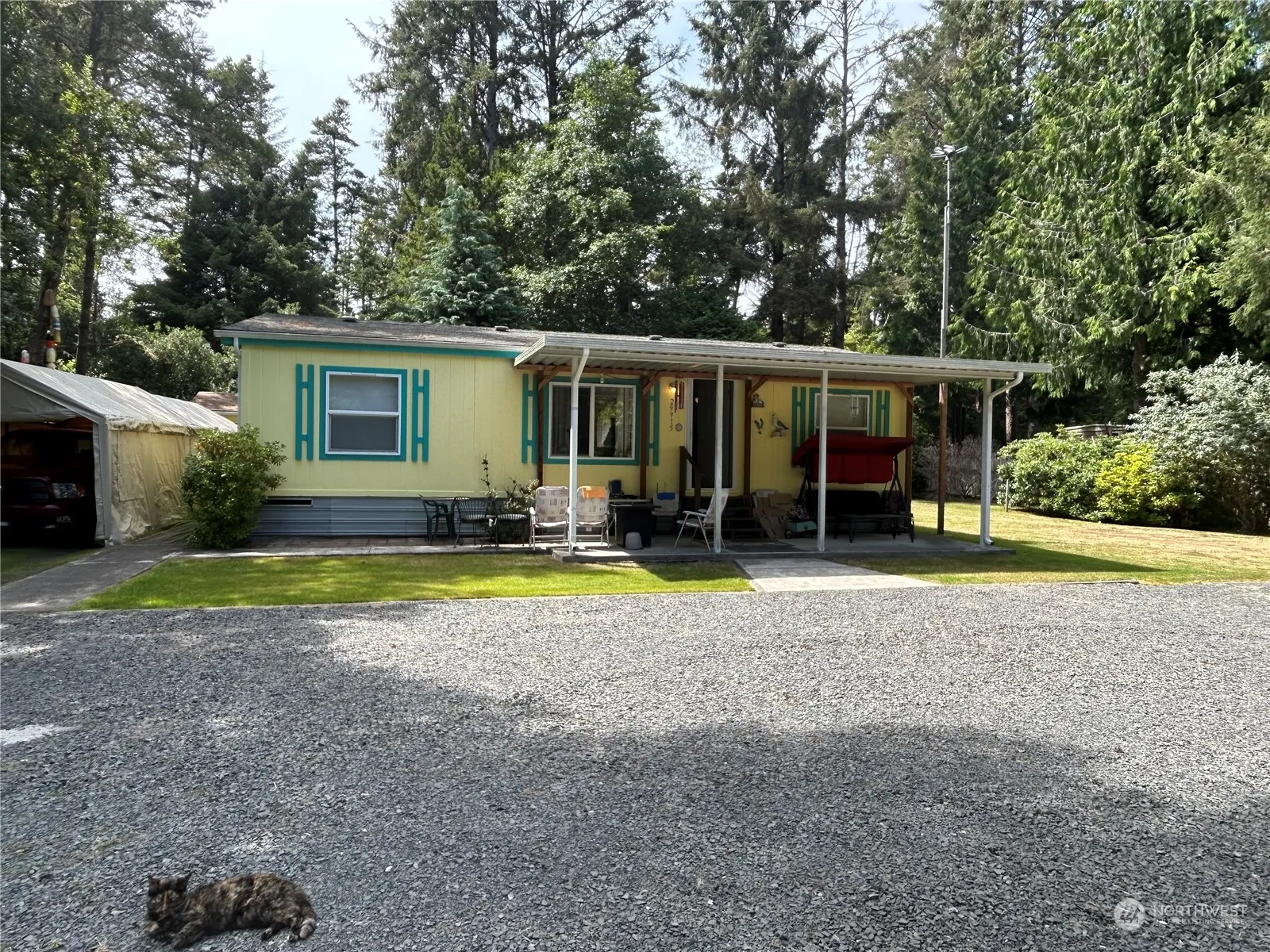 Not in Surfside, so no HOA With a quick walk to the beach!! Secluded 100X100 single level double lot with very well cared for double wide 3 bedroom 2 bath home tucked back at end of quiet dead end street ready to move in. Great layout w/large master suite, full bath & walk in closet at south end & two extra bedrooms with a full guest bath on north end. Laundry room off kitchen w/pantry, dining area & living room w/vaulted ceilings. Home has covered patio, Hardy plank siding, comp roof. Private Well & 11 X 17 Shop/Shed. Room to grow.