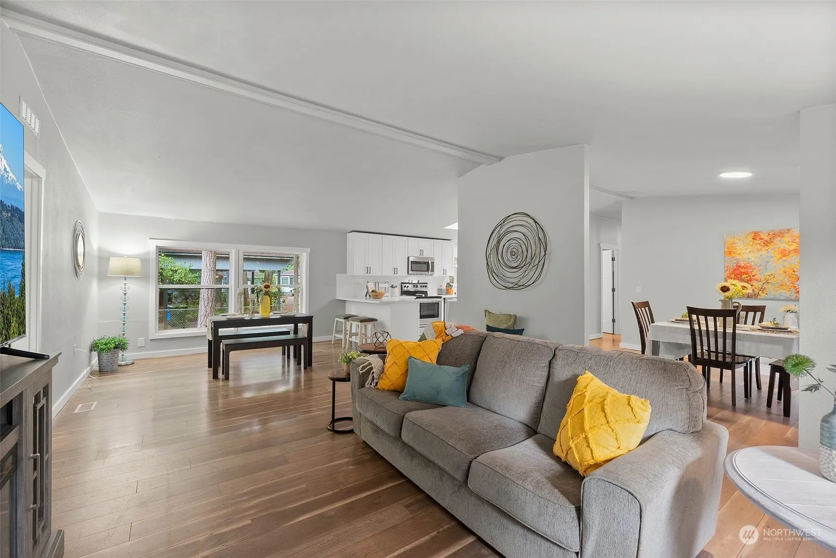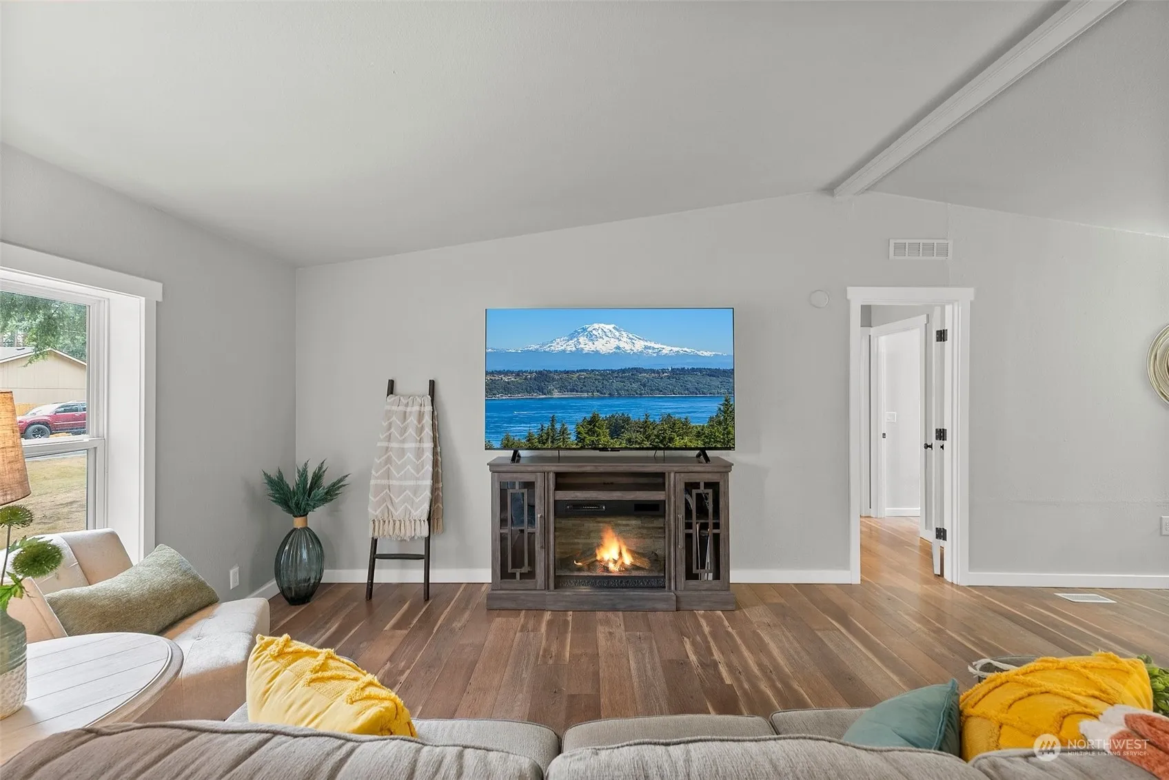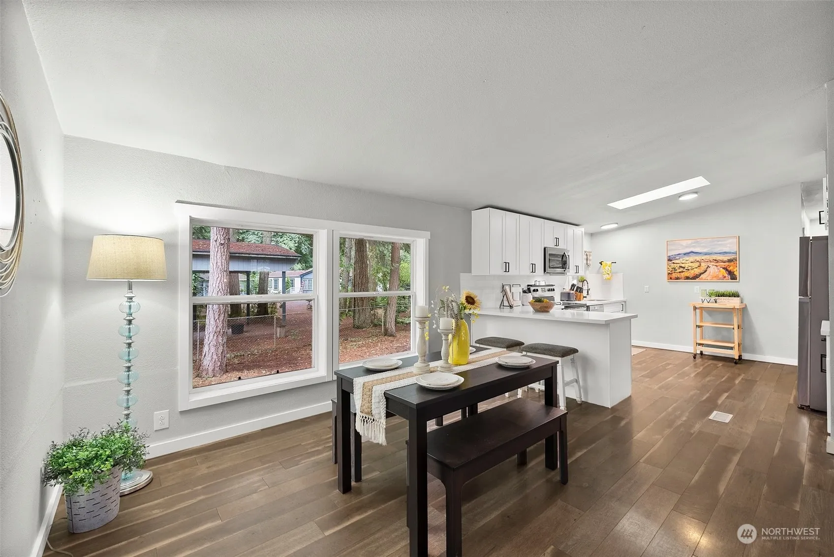Move-in ready! Vaulted ceilings & laminate flooring throughout the entire home (no carpet!). Skylight brings natural lighting into the Kitchen w/ peninsular eating bar, opening into main living space. Three guest bedrooms in addition to an extra rm for office/den. The Primary Suite w/ walk-in closet & private four pc bath. Sitting on a shy half acre, fully fenced, w/deck & gazebo covered patio. Detached garage plus driveway parking. Enjoy all the amenities that the Nisqually Pines neighborhood has to offer including parks w/playgrounds, swimming pool, community center, & private access to the Nisqually River. A summertime outdoor haven! Outside the city limits yet close to Yelm for schools & shopping. Short commute to JBLM. Welcome Home!