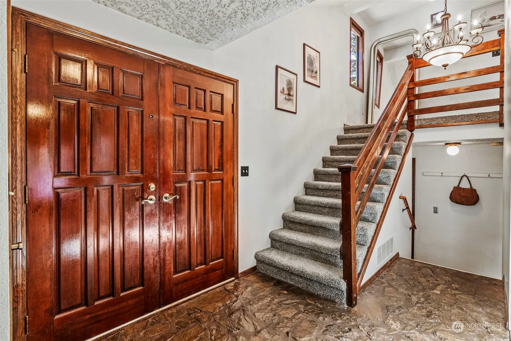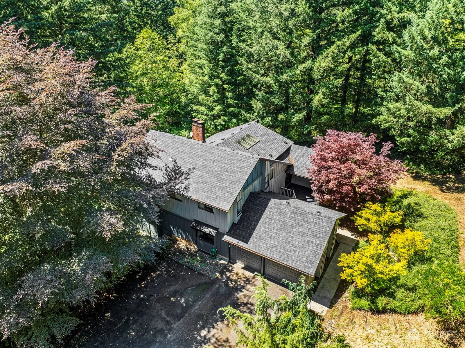 If you’re looking for peace and quiet, you’ll love the Alpine Heights Neighborhood. This home rests gently on 2.5 gorgeously private acres surrounded by trees and wildlife. When you walk into this tri-level home, you’ll be welcomed by ample natural light and high ceilings. Separate living and family rooms each with a cozy wood or pellet stove for those cooler evenings. Main level bedroom with half bath near by for convenience, and primary suite with balcony, walk in closet, and en-suite upstairs. 2 more bedrooms and hall bath upstairs as well. Off the eating area, living room and family rooms, you’ll find expansive decks for easy outdoor access. Separate formal dining room too. In the center of the home, you’ll notice a large office.
