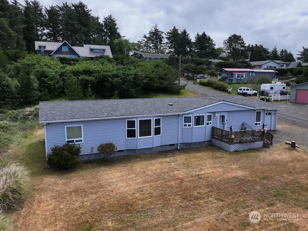 Everybody loves the coast so why not have your own beach paradise? This turn-key and updated double wide manufactured home rests on an almost 1/4-acre lot and it will blow your socks off! Checkout this fully furnished 3-bedroom, 2-bathroom home on a large corner lot just seconds away from the beautiful Pacific Ocean. Listen to the waves crashing while out on your expansive deck, watch sunsets from the comfort of your spacious living room. With room to sleep 6+, this home features new interior paint, fully loaded kitchen, 2 full bathrooms and a space to spread out. It even has an attached garage for storing all your beach toys. Large corner lot w/ space for RV, extra parking for guests. HOA dues are LOW at only $51/Mo. Covered water/garbage.
