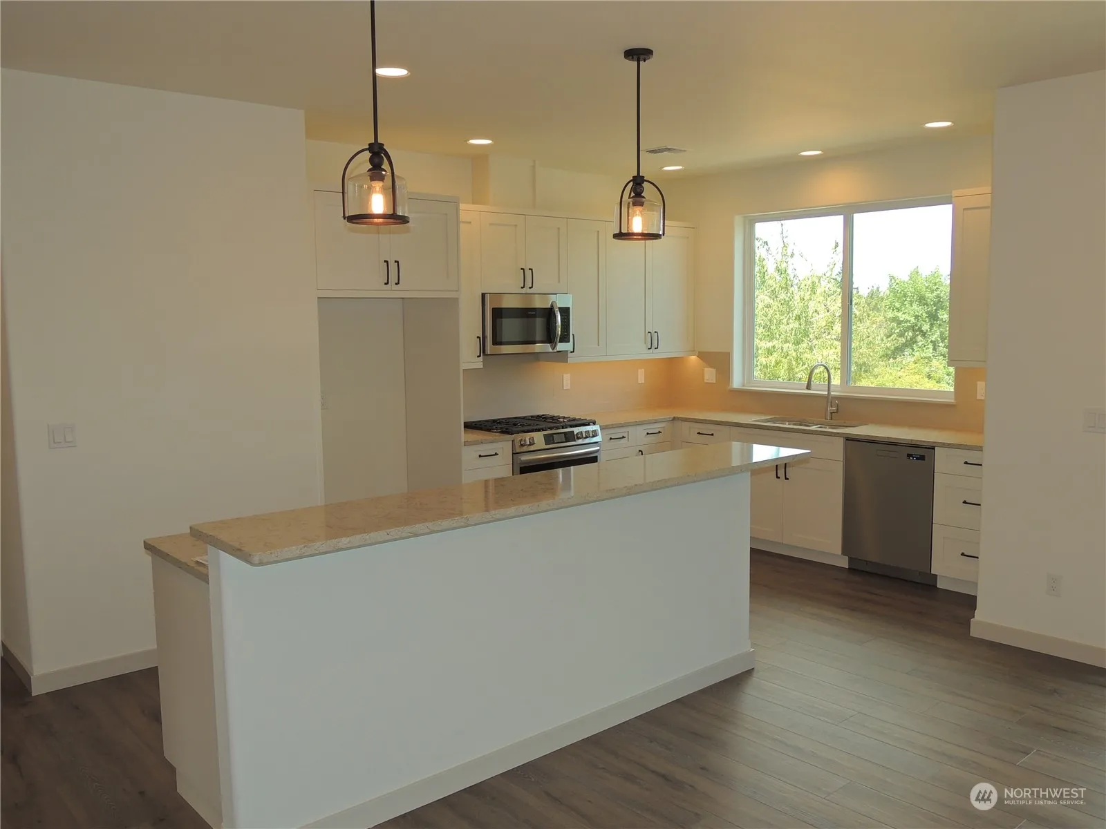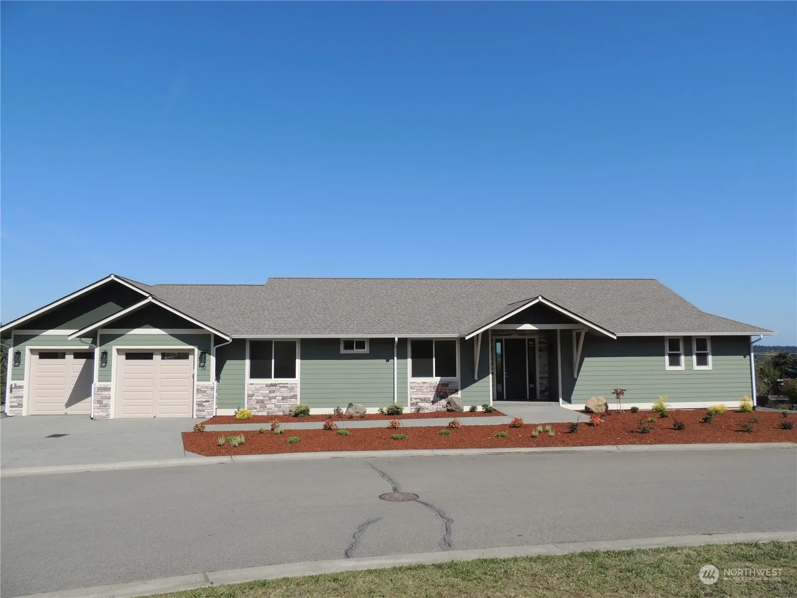 New home in Sequim’s Cedarbrook Estates. 2 BR, 2 BA + den on one level. Nice views of territory, water and Mt Baker. Energy features include heat pump, programmable thermostat, hybrid heat pump water heater, hot water circulation pump, supplemental heat in bathrooms. LVP floors throughout, quartz counters, custom white cabinets with under cabinet lighting. Primary suite: tile shower with seat, detachable shower head & frameless glass door, double sink vanity, spacious walk-in closet, separate toilet room. Laundry room cabinets and sink. Walk in pantry with shelving. Roomy den with double glass doors. 8 foot exterior doors, 9 foot ceilings and tall windows for abundant natural light. Propane fireplace with owned tank.