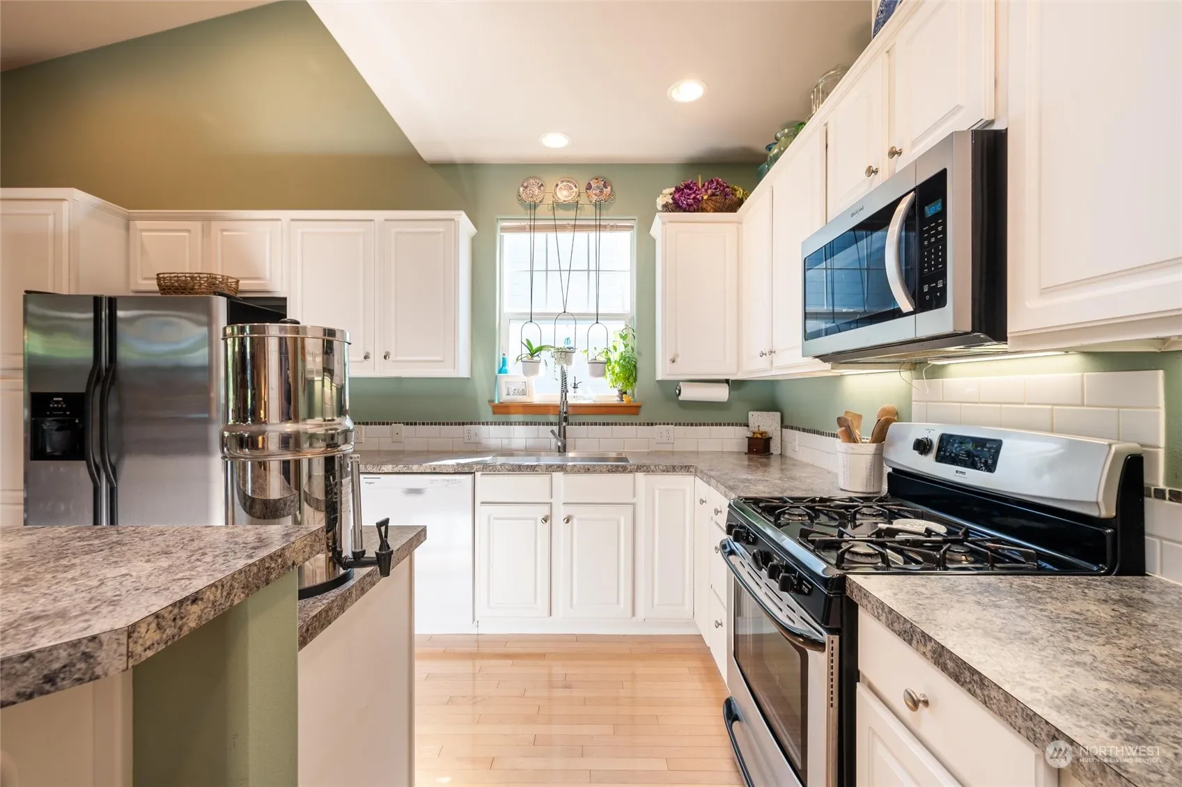 Adorable home in the heart of Burlington. Have you imagined walking to town for meals, parks, or shopping? This 3 bed 2.5bath home has main level living with primary on main. Main level also has bright kitchen with large island, half bath, office, and dining area with slider out to yard. Upper level with 2 bedrooms and full bath. Backyard with covered deck, fully fenced, and outbuildings for your hobbies. 2 car garage with extra parking on side plus gate to park RV/boat behind with electric hookup or 220v for EV charging. Close distance to I5 for commuting. 8X16 shed with porch and loft is spray foamed, wired and drywalled and can be additionally negotiated.