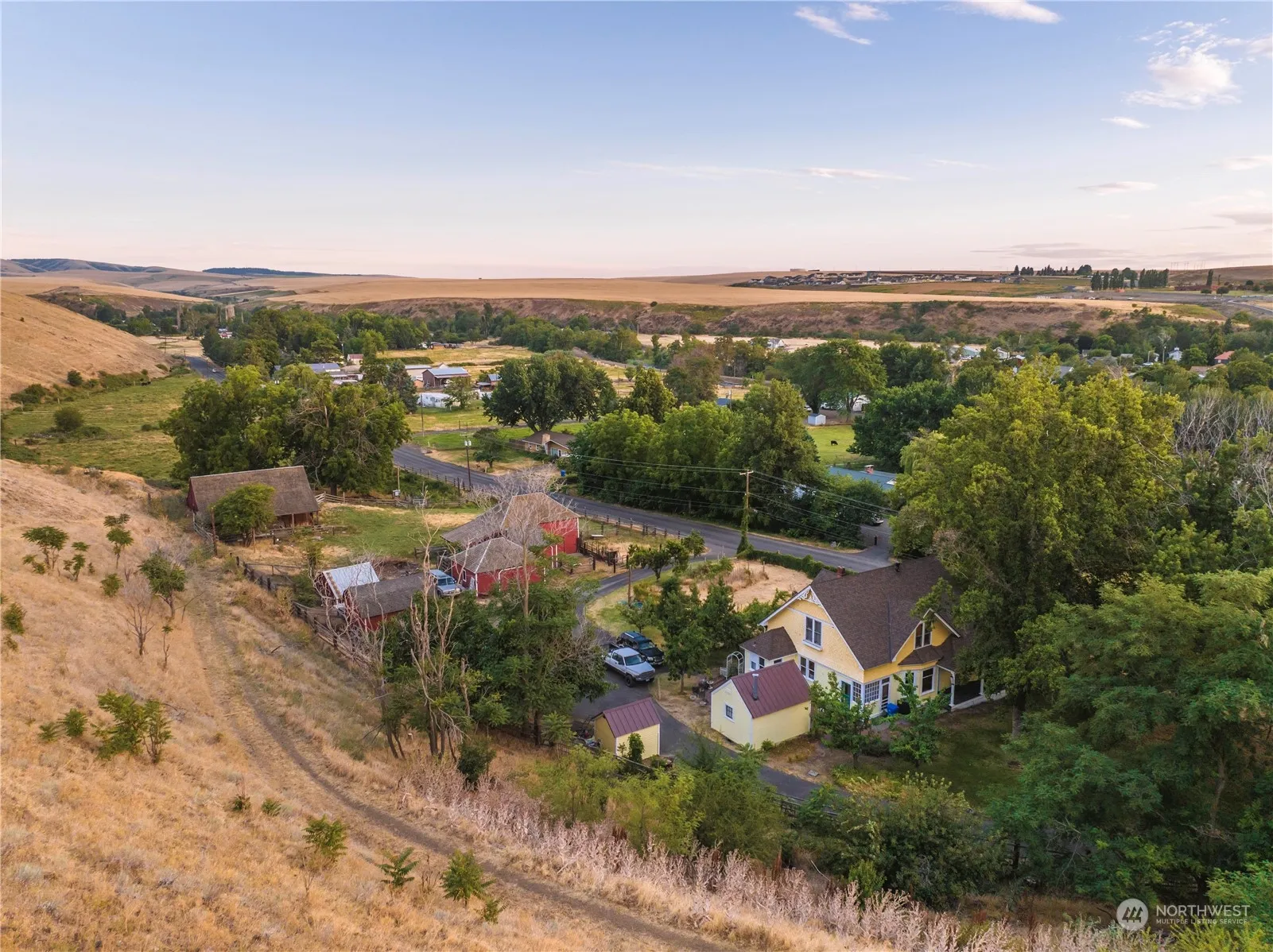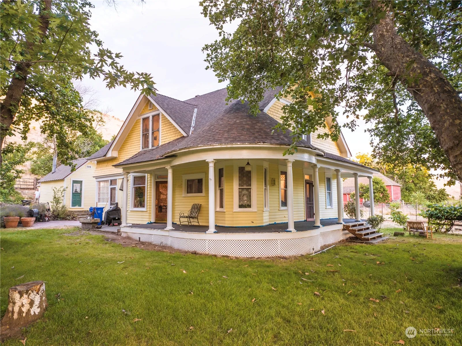 Victorian charm on 33 acres with full water rights. Classic turn-of-the-century home offers historic flair and details including original fir floors throughout both levels. Numerous outbuildings including chicken coop, hay loft, barn, carriage house, and cold cellar. Recent updates include roof, exterior paint and modern electrical, with opportunity to add your own style and touches. Separate pasture, corrals, and garden areas including mature fruit trees. Showings by appointment only, please do not bother tenant.