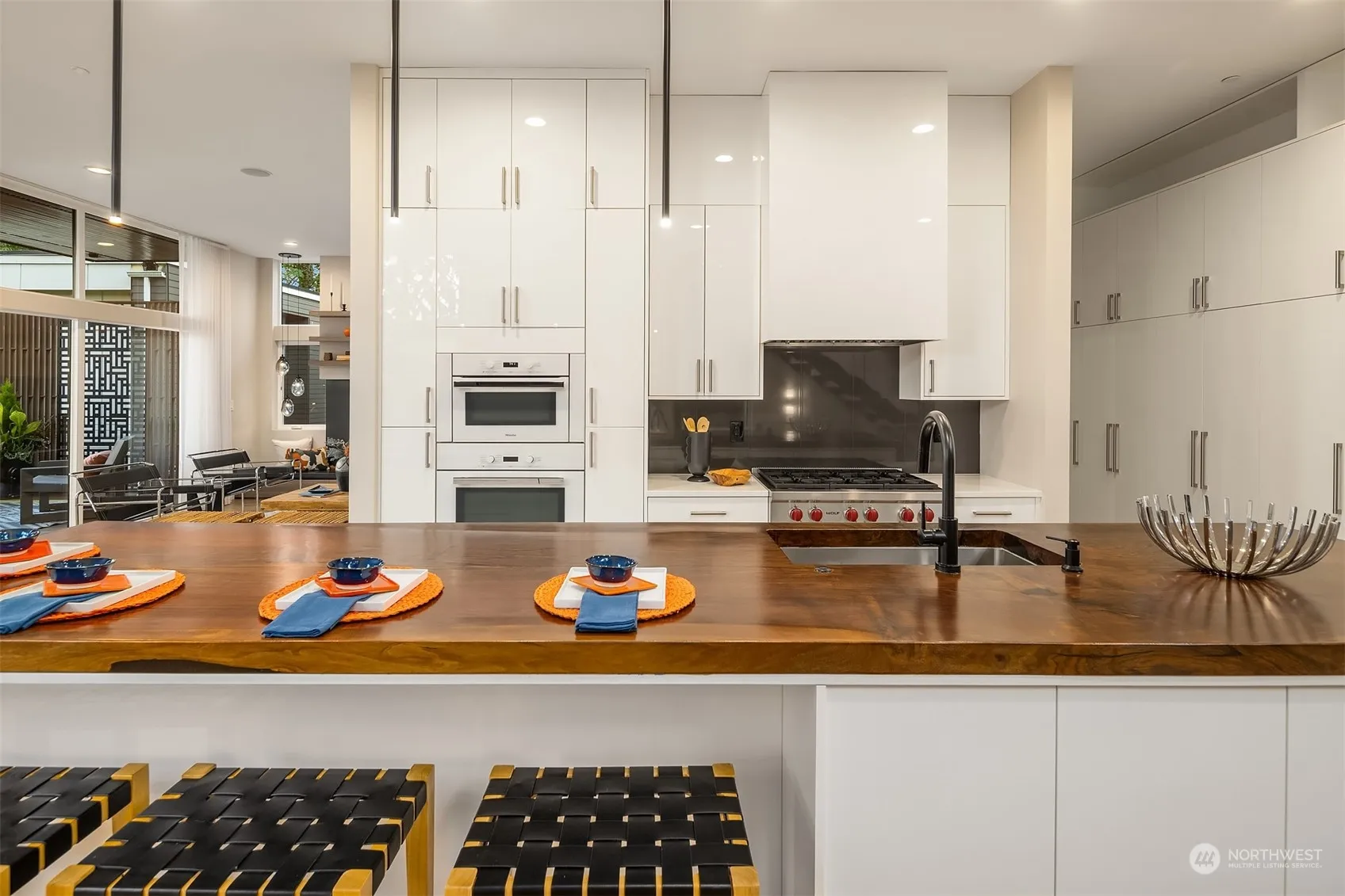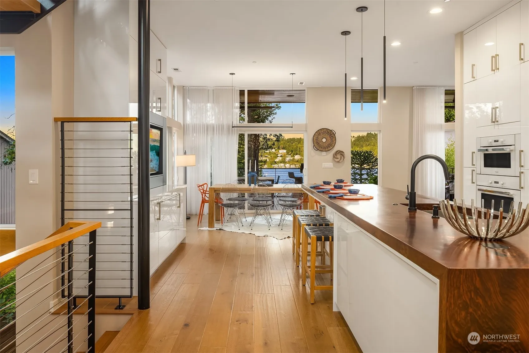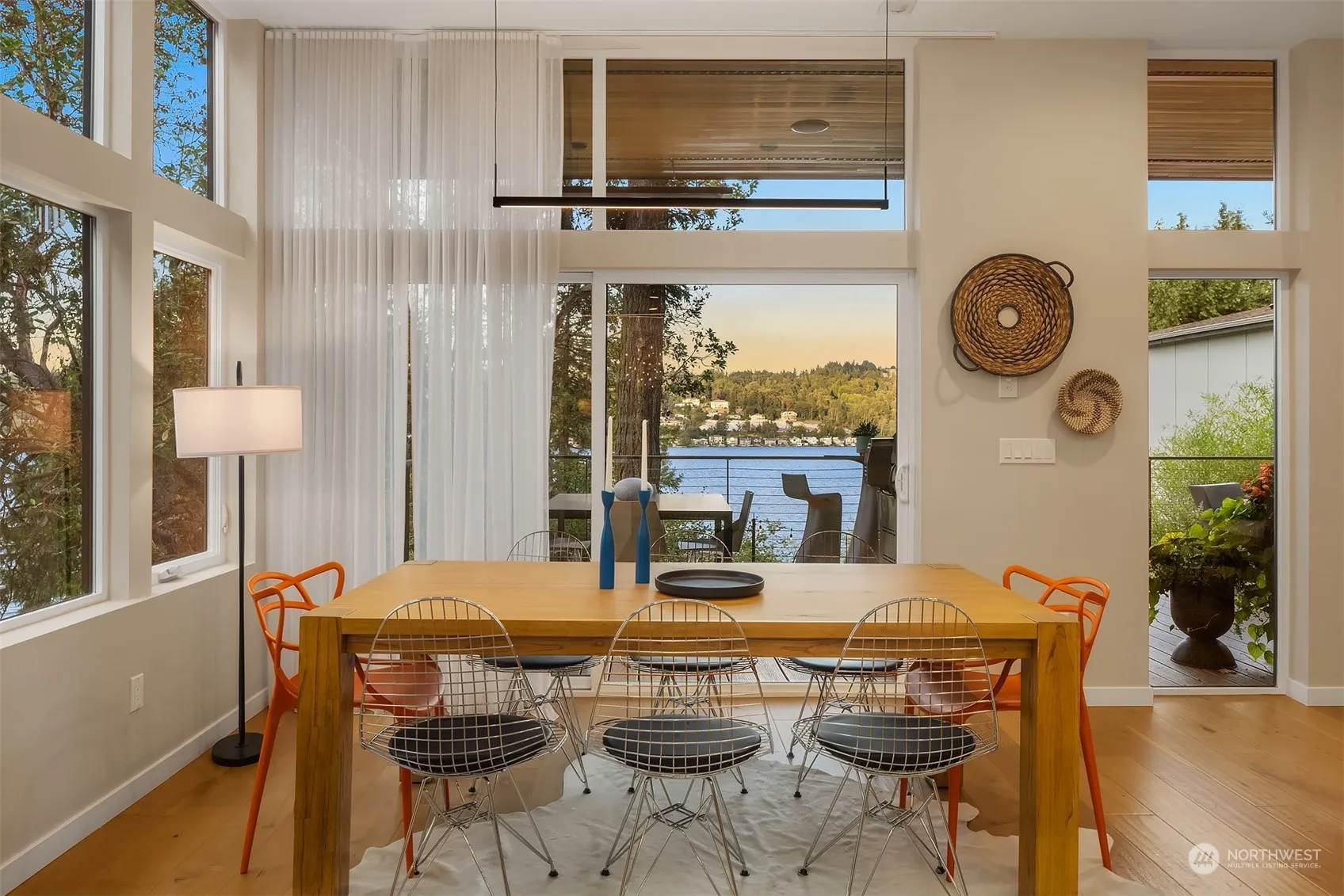Elevated, Modern View Masterpiece. Better than new: custom, high-end updates w/ all the right spaces- this house is dialed! Sparkling lake views through walls of windows. Center-stage kitchen w/ waterfall wood island, Miele & Subzero appliances, beverage/bar station, designer lighting. Light & oh so bright! Vaulted ceilings & open floorplan w/ 4 BDRs up together & spacious lower-level 5th BDR guest suite. Entertain year-round w/ seamless connection to outdoors: huge multi-level entertaining decks, covered patio w/ heaters, built-in gas fireplace w/ surround seating, hot tub & exquisite landscaping. All the extras: heated garage, A/C, in floor heating, e-car charger, level entry in private neighborhood. Turn-key perfection on Mercer Island!