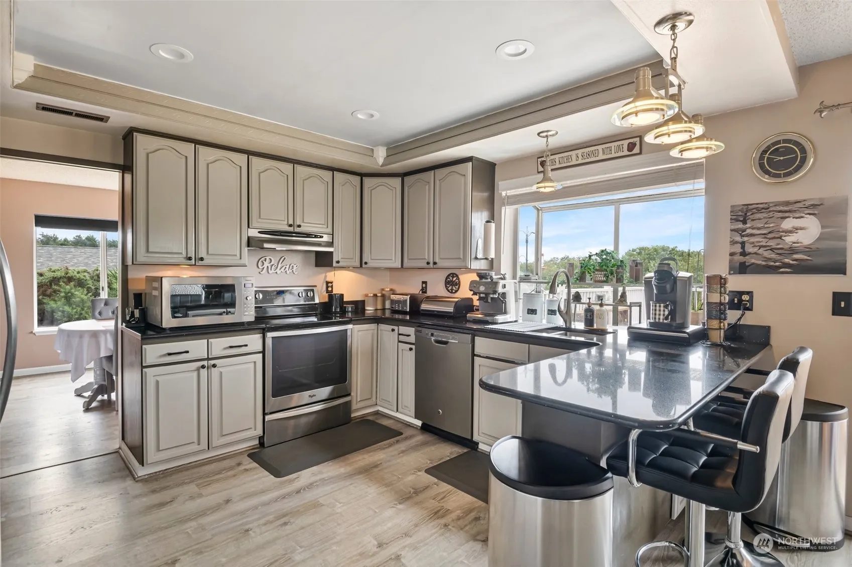 Rare opportunity in Grayland! Views of the ocean, this large 3+ bed, 3 bath ~2350 ft home is well maintained and ready for its new owner! Downstairs you’ll find an expansive living/dining area with renovated kitchen and extra living area along with guest full bath, laundry and office. Upstairs is the large primary with full en suite, an additional full bathroom and 3rd bedroom. Bright windows upstairs/downstairs point to breathtaking, peaceful views of the ocean. Attached 3-car garage, decks up and down for entertaining all on ~1/2 an acre!