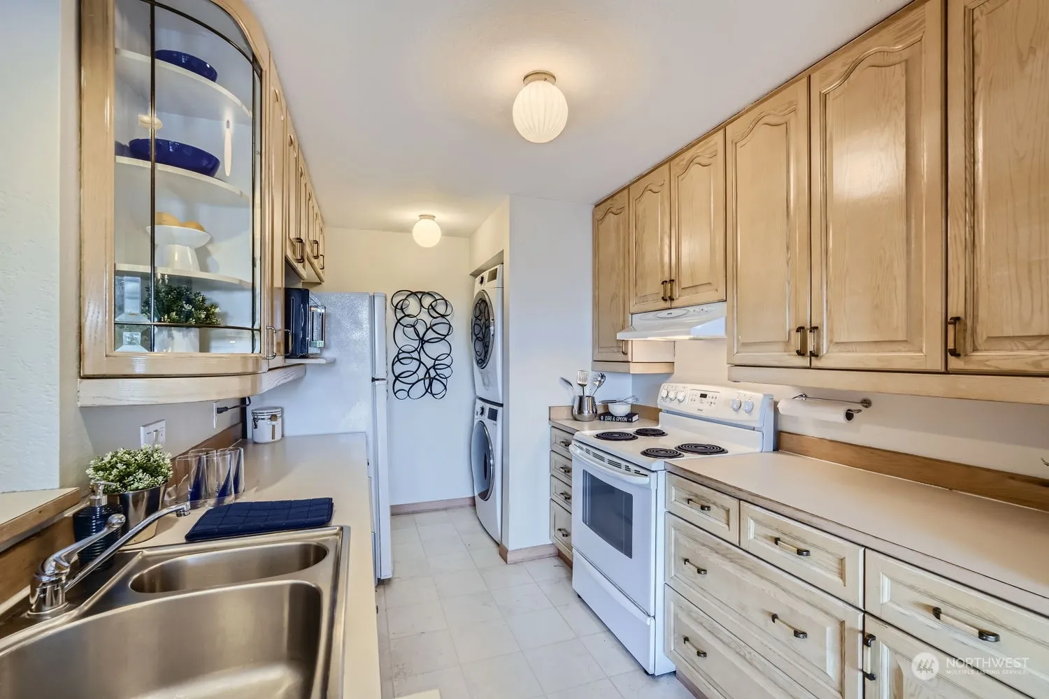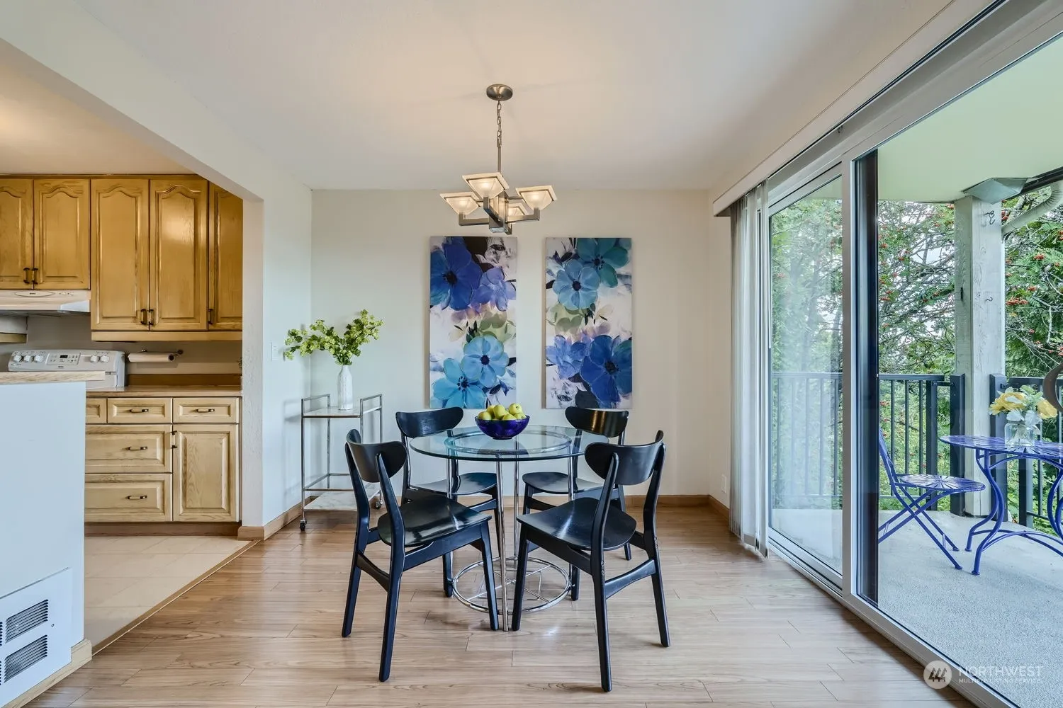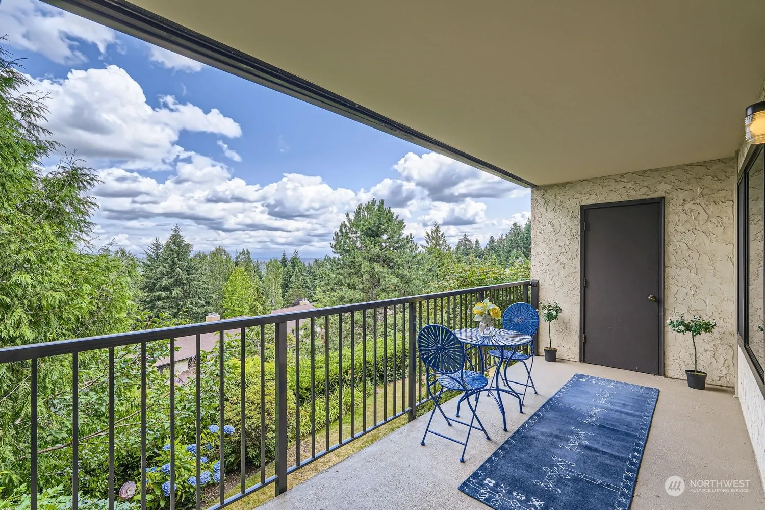 This quiet, level-entry (no steps) end unit with private deck offers a panoramic view of the Cascade Mountains. The condo is freshly painted and bright, featuring an open-concept living and dining area. The kitchen boasts oak cabinets with appliances including washer and dryer. New wall heaters and electrical upgrade. Two storage units. This popular Kuleana Forest Hills complex offers an outdoor swimming pool, tennis courts, RV parking, and a clubhouse with exercise equipment and sauna. HOA covers water, sewer, garbage, and basic cable. One assigned parking space and ample guest parking. Conveniently close to I-5, bus route, shopping, etc. Nearby Light rail station opening soon!