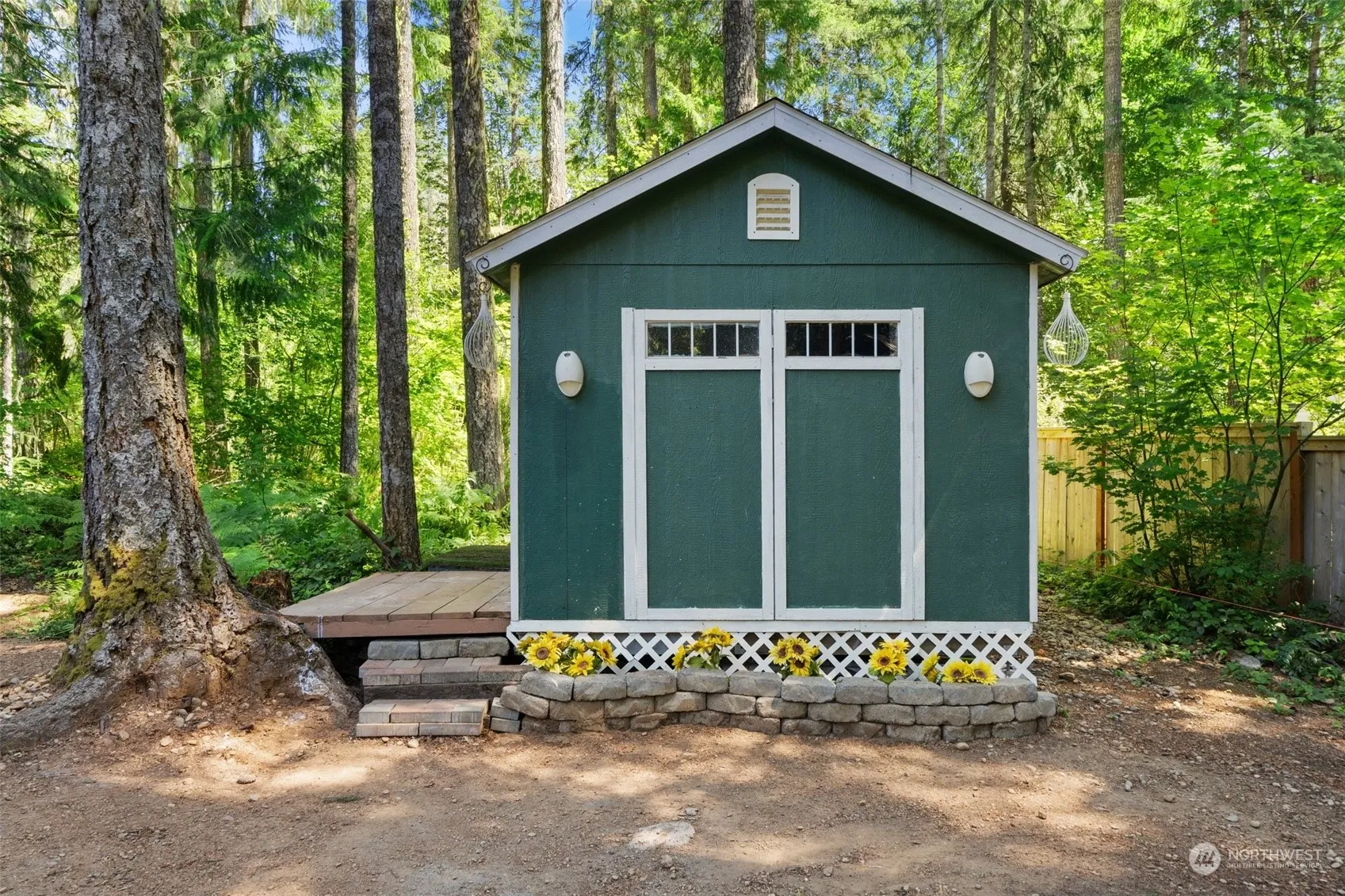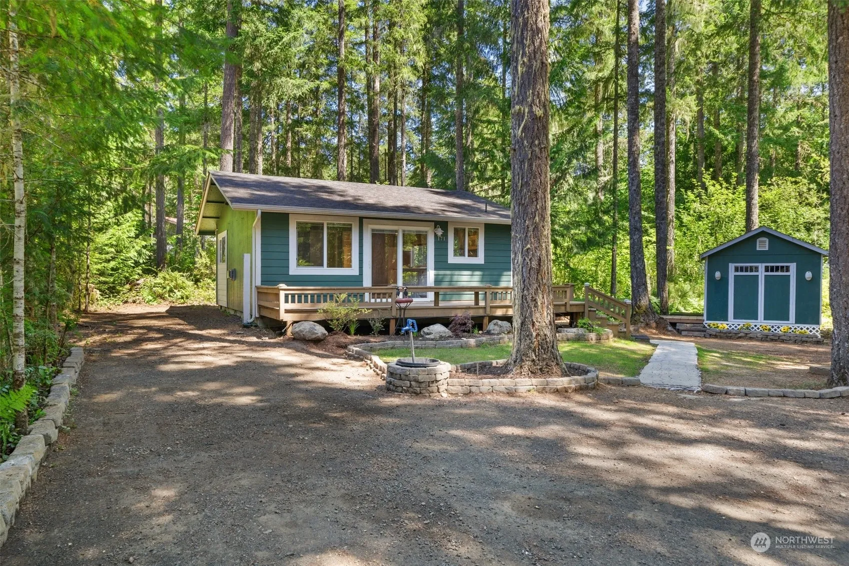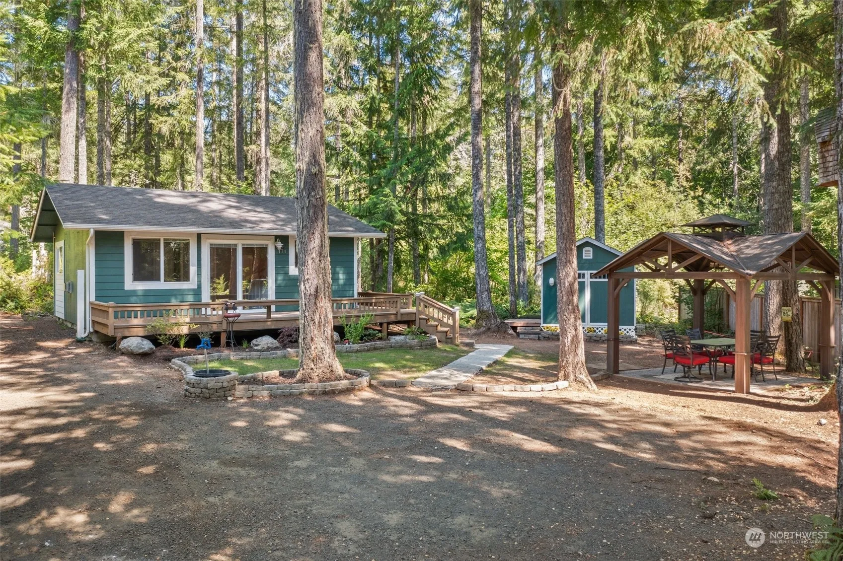Adorable cabin with partial golf course views. Great opportunity for an Air B&B or vacation home. Nicely secluded wooded lot with large gazebo for al-fresco dining, outbuilding (studio? shop?), and firepit. Cabin’s large front deck is perfect for entertaining. Plenty of room to park an RV and/or other recreational vehicles. Wonderful community with fantastic amenities: golf course, community beach, pickle ball courts, parks, playground, trails, and community center. Only a few miles from picturesque downtown Hoodsport with its shops and wine tasting.