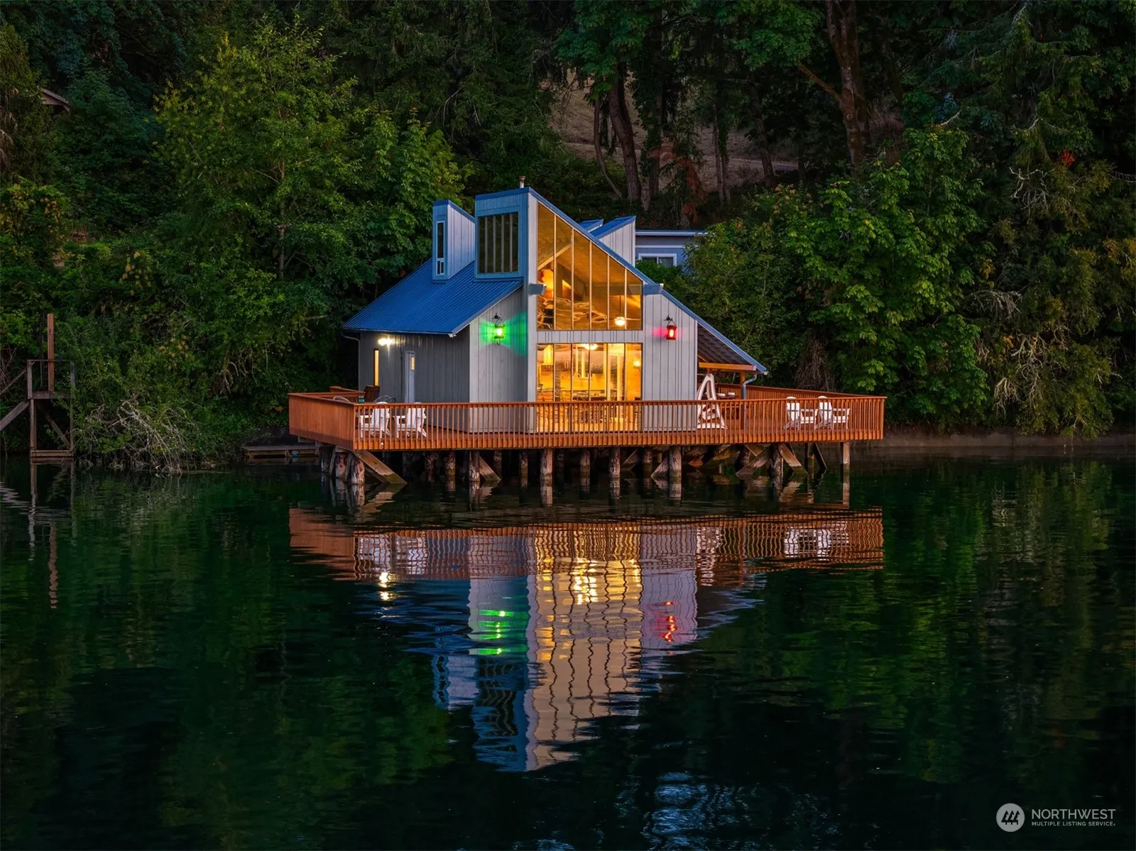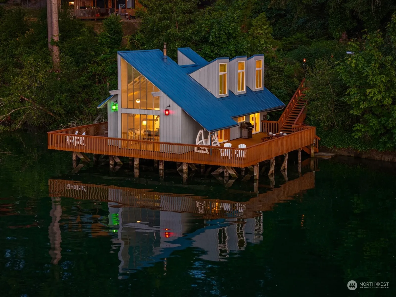 Waterfront living at its finest awaits at this secluded, one-of-a-kind home! At high tide, the house sits entirely over water. Admire views of herons, eagles, seals, and whales, and everything from small boats to large barges. The sunsets over the Olympics are spectacular. A wraparound deck lets you see the sunrise in the East with your breakfast and sunset in the West with dinner. A few stairs to the beach lead you to prime beach combing or a kayak adventure to Eagle Island. The main living space is an open floor plan seamlessly combining the remodeled kitchen, dining area, and living room featuring a cozy pellet stove. The gently sloping 1.3 acres offers many possibilities for a large shop or ADU. Sold fully furnished for a turn-key home!