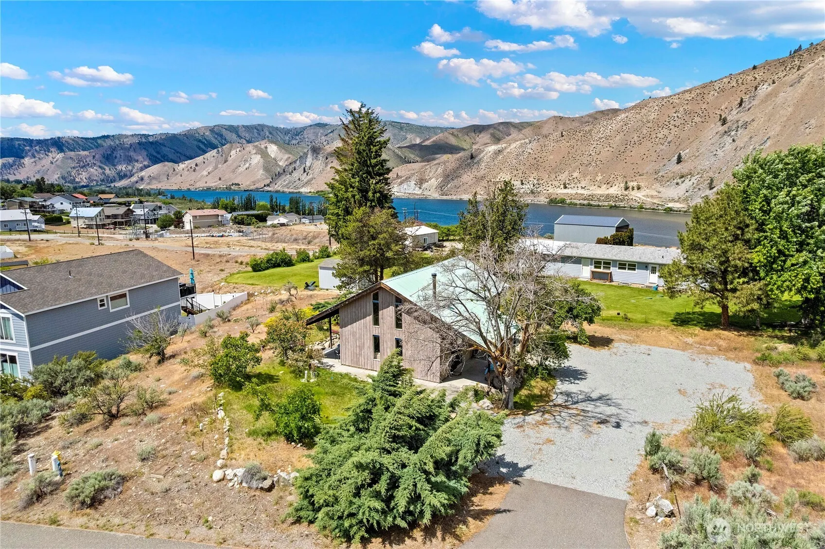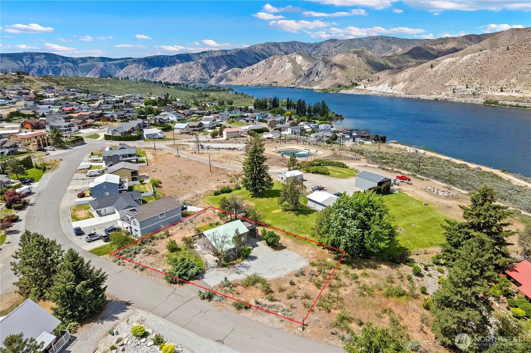 Endless potential in Sun Cove/Lake Entiat Estates! This charming 1-bedroom + loft cabin sits on 2.5 premium lots with Columbia River views from the upper deck. Keep as-is for a turnkey vacation escape, split off one of the lots and sell for income, or build your new dream home & shop. Cabin is fully operational today with vaulted ceilings, dual closets in primary bedroom, covered porch, carport, metal roof, and new A/C (2024). Enjoy the ultimate vacation lifestyle with access to the community clubhouse, heated pool, tennis courts, basketball court, 2 boat launches, 3 marinas, beach, parks, walking trail along riverfront & fun community events. Only 15 min to Lake Chelan and 10 min to Desert Canyon Golf.