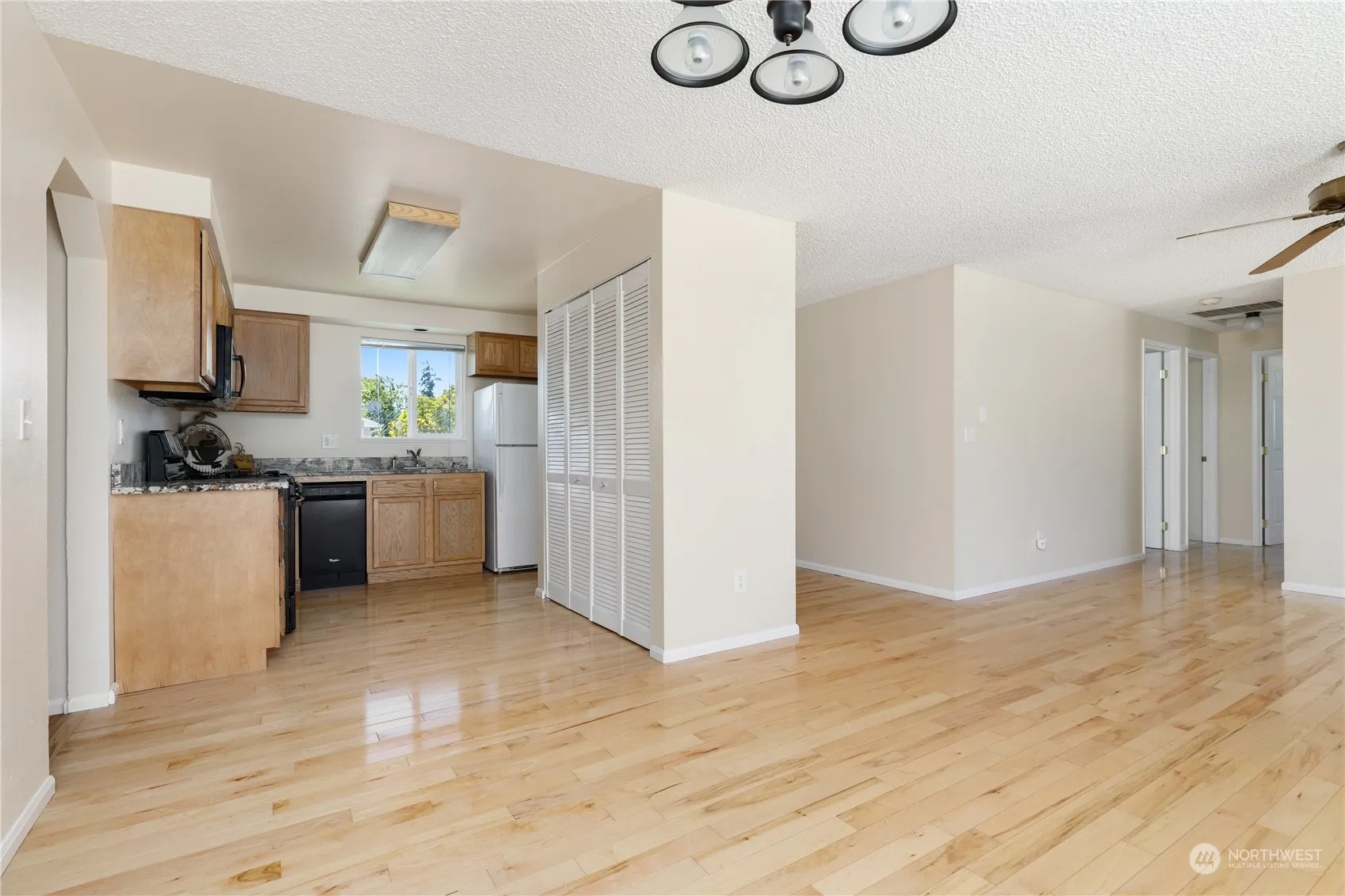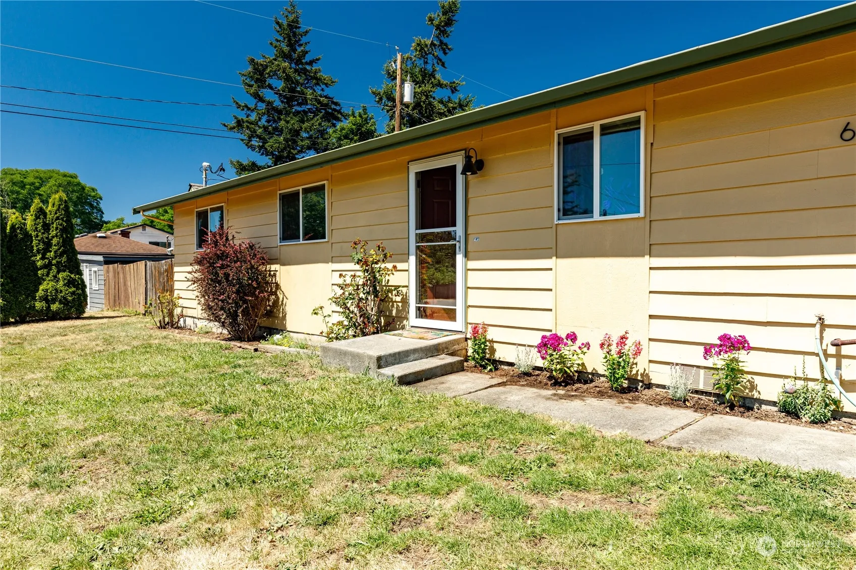Step into this sharp, must-see home all on one level. Whole home ducted for highly efficient heat pump w/ A/C for warm days; wood-burning stove for cozy winters. Modern upgrades include a great, new hybrid water heater & ready to go EV car charging outlet plus a fantastic new front screen & storm door. Bonus room is great additional space. Main room w/ natural maple flooring. Inside fresh paint & new bedroom carpet. Granite countertops & kitchen w/natural gas range. Washer & gas dryer included. Enjoy the generous corner lot, fully-fenced backyard w/ deck, roses, blueberries, garden space, a small garage & a shed for outside essentials. Across from a park & close to schools & fire station. Abundant reasons to make this your Home sweet Home.