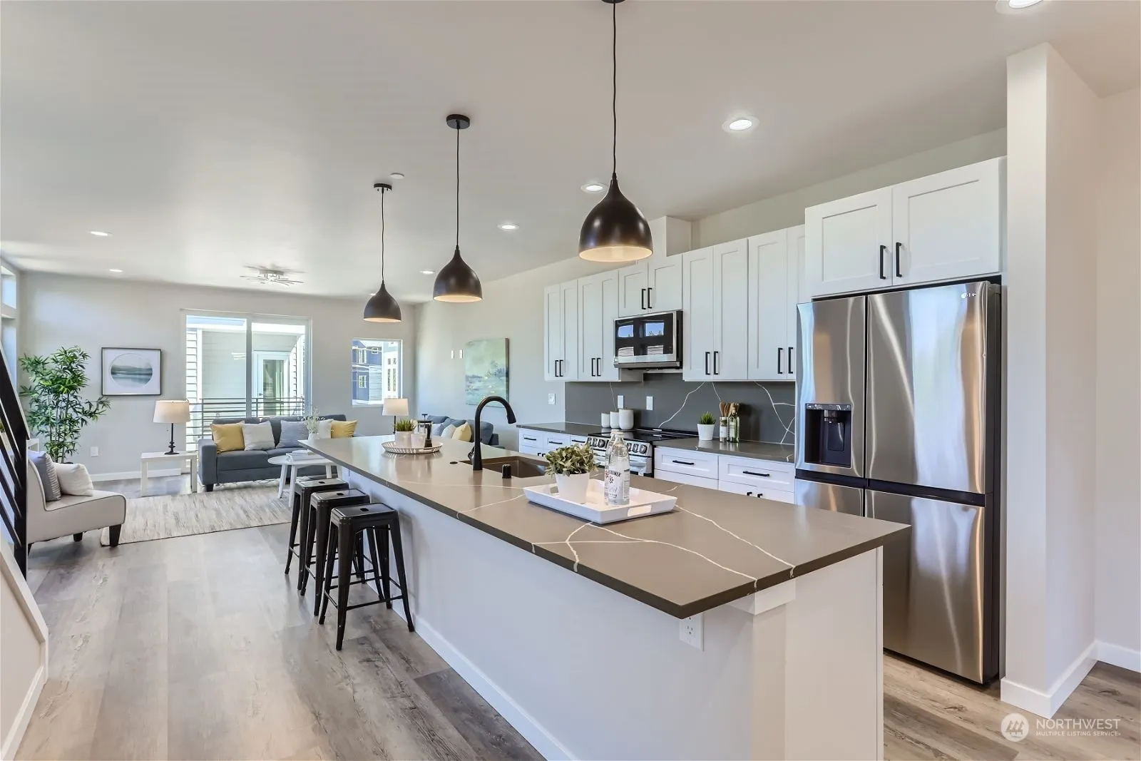 Stunning new multi-home community developed by local Shoreline resident builders. This three bedroom, two and 3/4 bath home is targeting 4-Star Green Built and a short walk away from the 185th St Shoreline Light Rail Station (opening August 31st). Expansive floorplan with light and bright spaces throughout. Custom quartz countertops in your entertainer’s kitchen with SS appliances, convection cooking, as well as a generous island with seating for five. Two upper-level bedrooms with vaulted ceilings and gorgeous full baths. Ductless HP mini-splits for year-round comfort, tankless water heater, and fire-sprinklers. You’ll appreciate this quiet residential street, the award-winning Shoreline schools, and Cromwell and Shoreline Parks.