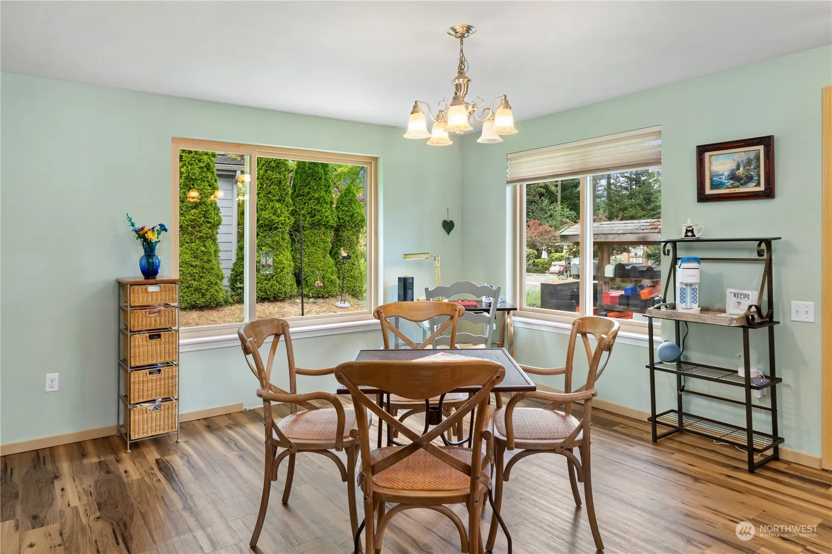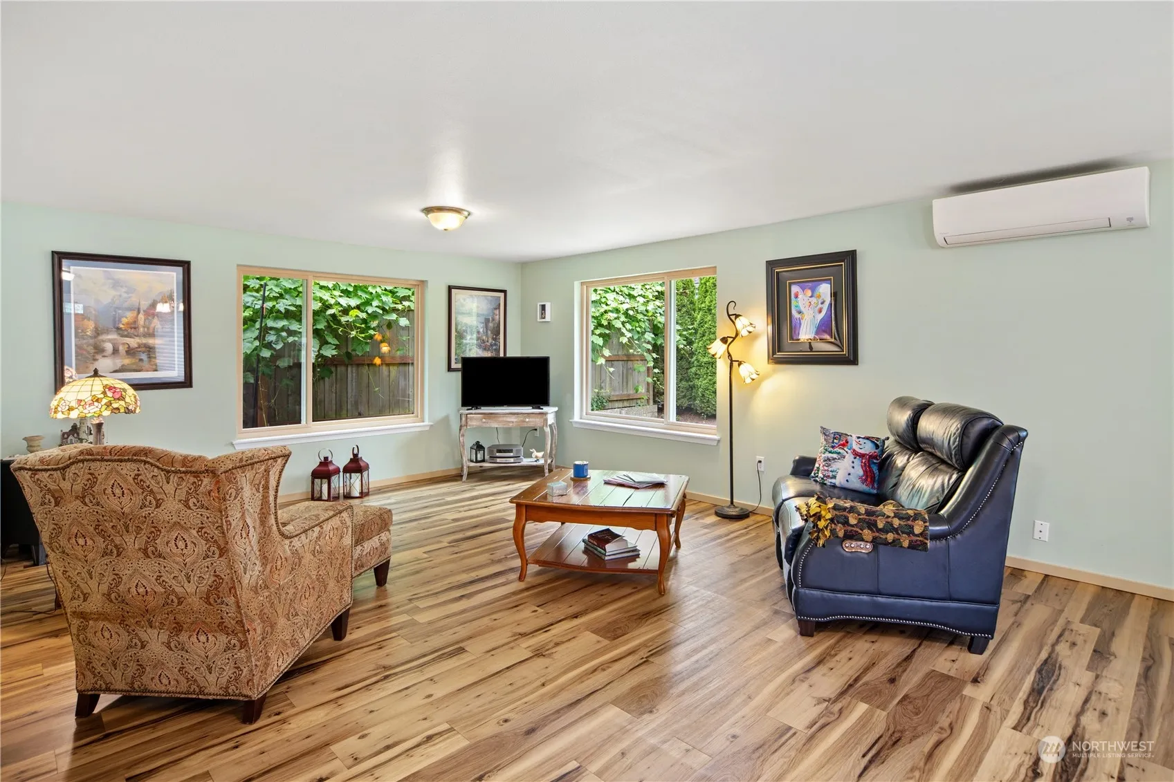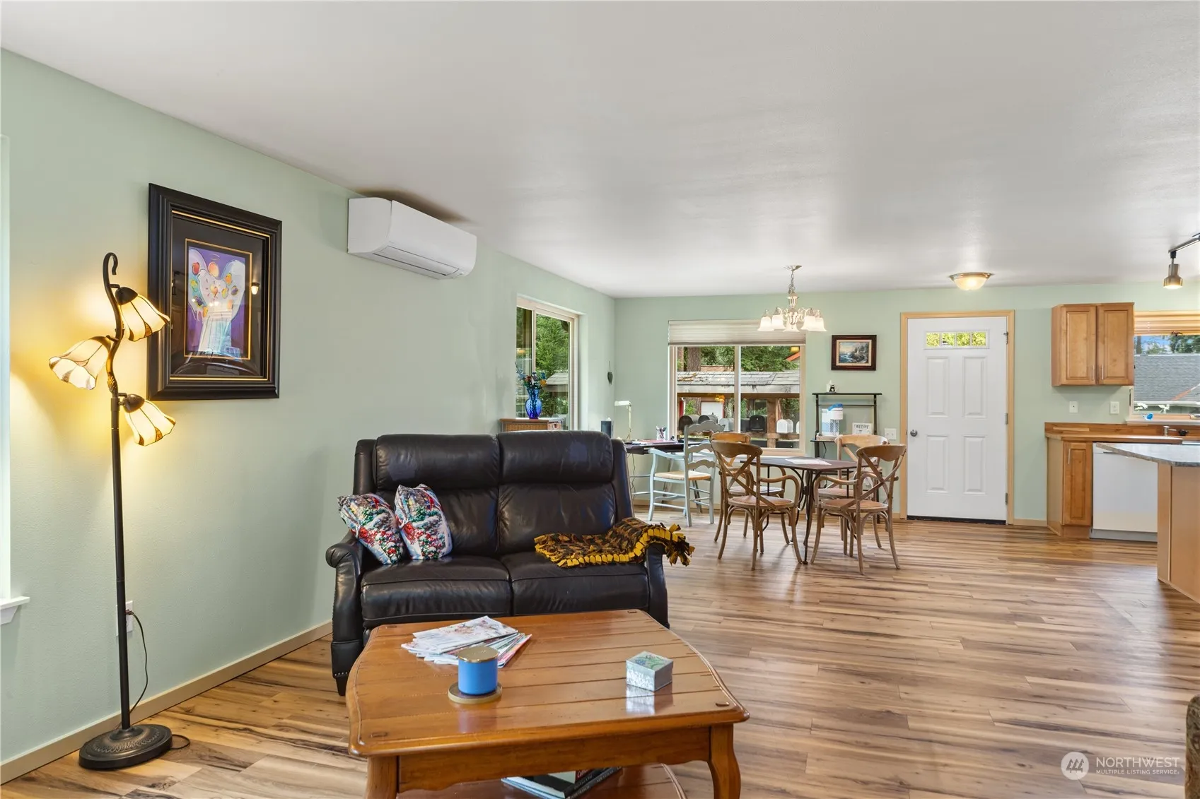 Rambler on nice corner lot! Handicapped accessible with no steps, even from entry & garage. ADA compliant; 36″ wide doors, wide hall, lower switches, lever doorknobs. Wonderful, open floor plan features newer triple-pane Anderson windows, waterproof plank flooring throughout, ductless heat pump for AC. Kitchen features butcher block counters, farm sink, breakfast bar and all appliances. The spacious primary bedroom has bathroom with roll-in shower. Bedrooms upgraded with Plantation shutters and both baths have been upgraded to high flush toilets. Cement siding with fresh paint and 2 car garage with new door. Hamilton Heights neighborhood has a play park, trails and RV parking. 2 miles to downtown Port Townsend.