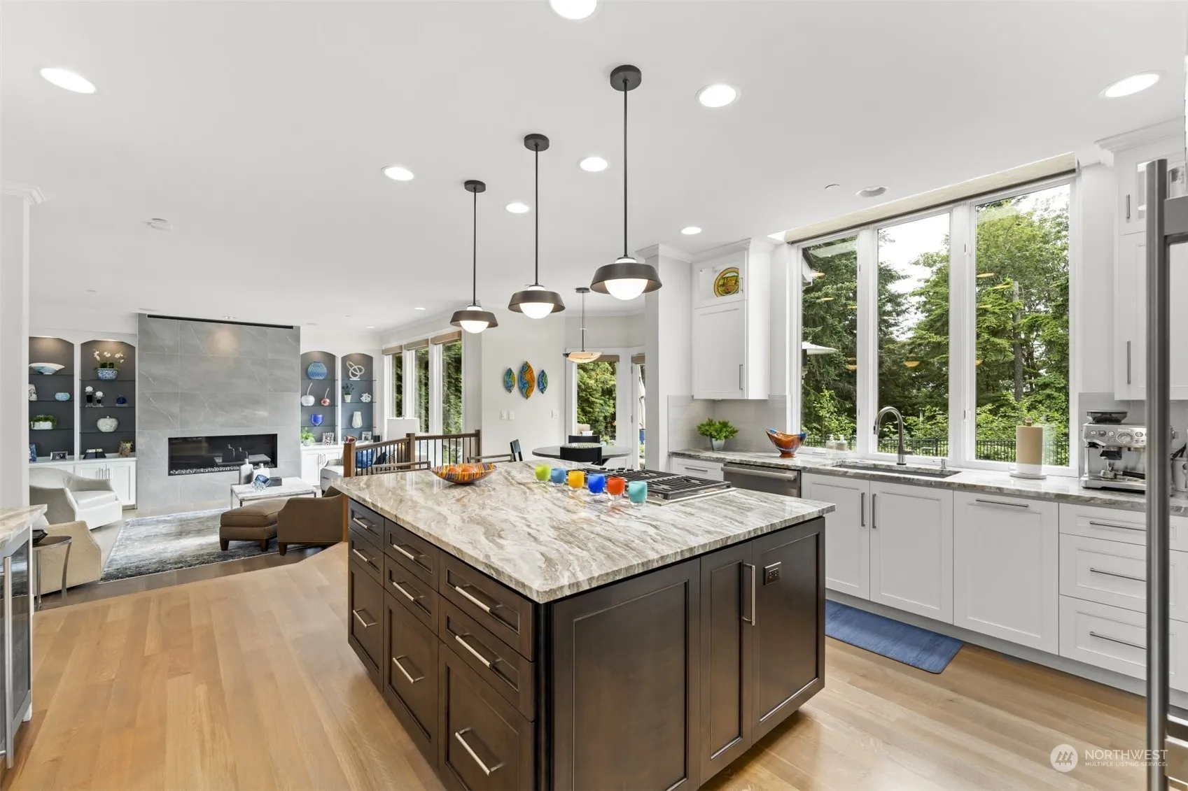 Experience luxury living in the exquisitely remodeled home featuring 4 BD, 3.5 BA. den, and bonus. The main level boasts gorgeous hardwood/millwork, expansive windows, double French doors that lead to a private oasis complete with built-in fireplace/BBQ, and a water feature. The gourmet kitchen is a stunner: custom cabinetry, quartzite countertops, Wolf appliances, Sub-Zero and wine refrigerator. The luxurious master with a double sided fireplace adjoins the elegant master bath with gorgeous marble and free standing tub. Additional features include a 3-car garage, 2 staircases, A/C, generator, new roof, freshly painted int/ext, irrigation system, cul-de-sac, privacy and views. This home is your dream come true!