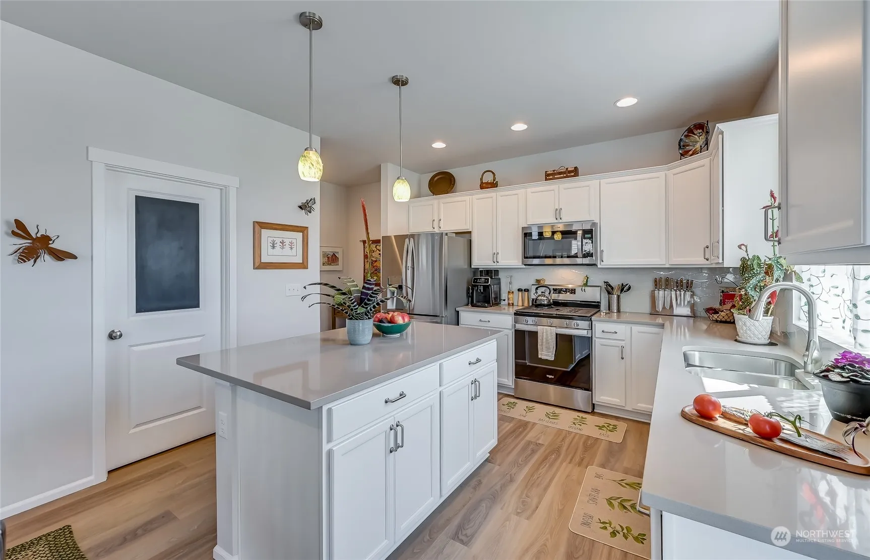 This beautifully maintained 3-bed, 2 ½-bath home in Cambridge Commons offers an open-concept main floor with high ceilings, abundant natural light, and energy-efficient features. The modern kitchen has quartz countertops, SS appliances, and a walk-in pantry. The living room includes a gas FP, and there’s a versatile bonus room/office. Upstairs, enjoy a spacious primary suite, 2 large bedrooms, a cozy family room, and a laundry room. Smart home features include Wi-Fi blinds, Nest thermostat, and a 3-zone sprinkler. A 3-car garage, landscaped yard with hot tub, fire pit, and flagstone patio complete the package. Community amenities include a dog park and playground.