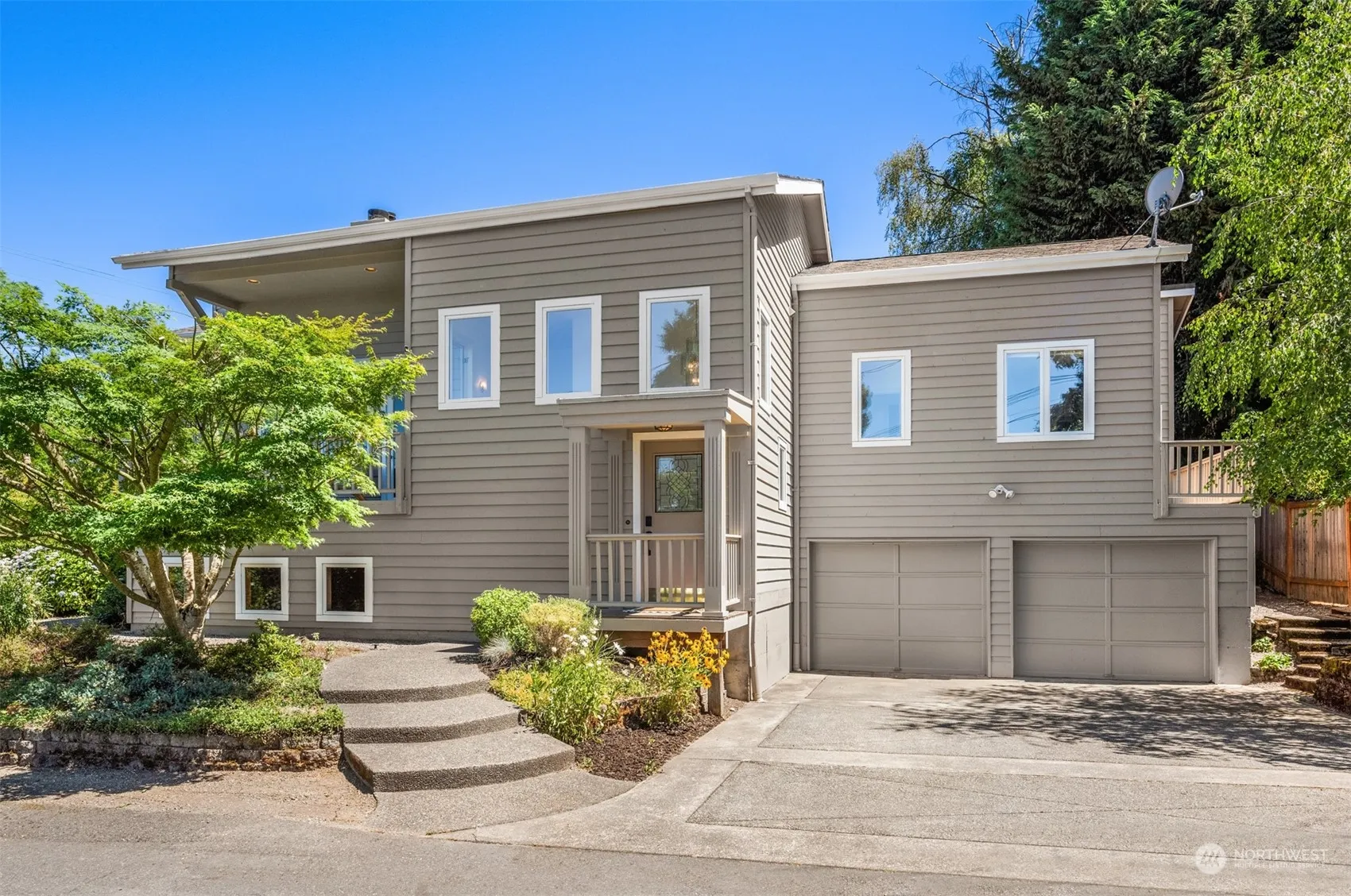 Northend lake view gem! Ideal corner lot on Mercer Island’s sought-after First Hill, this stunner is light, bright & turn-key! Flowing spaces, soaring ceilings & abundant windows with Western city & lake views. Main floor living & dining spaces lead to kitchen with eating nook & butler’s pantry. Upstairs primary suite with en suite bath, walk-in closet with family room & office. 2 lower bedrooms, laundry & flex spaces. Tons of updates: refinished hardwoods, full exterior & interior paint + new carpet. Lower-level unfinished ADU/MIL potential with separate entrance + plumbing & electrical done. Multiple decks, fenced sunny & flat backyard. The BEST location: walk to waterfront parks, shopping & dream commute to Seattle or Bellevue.
