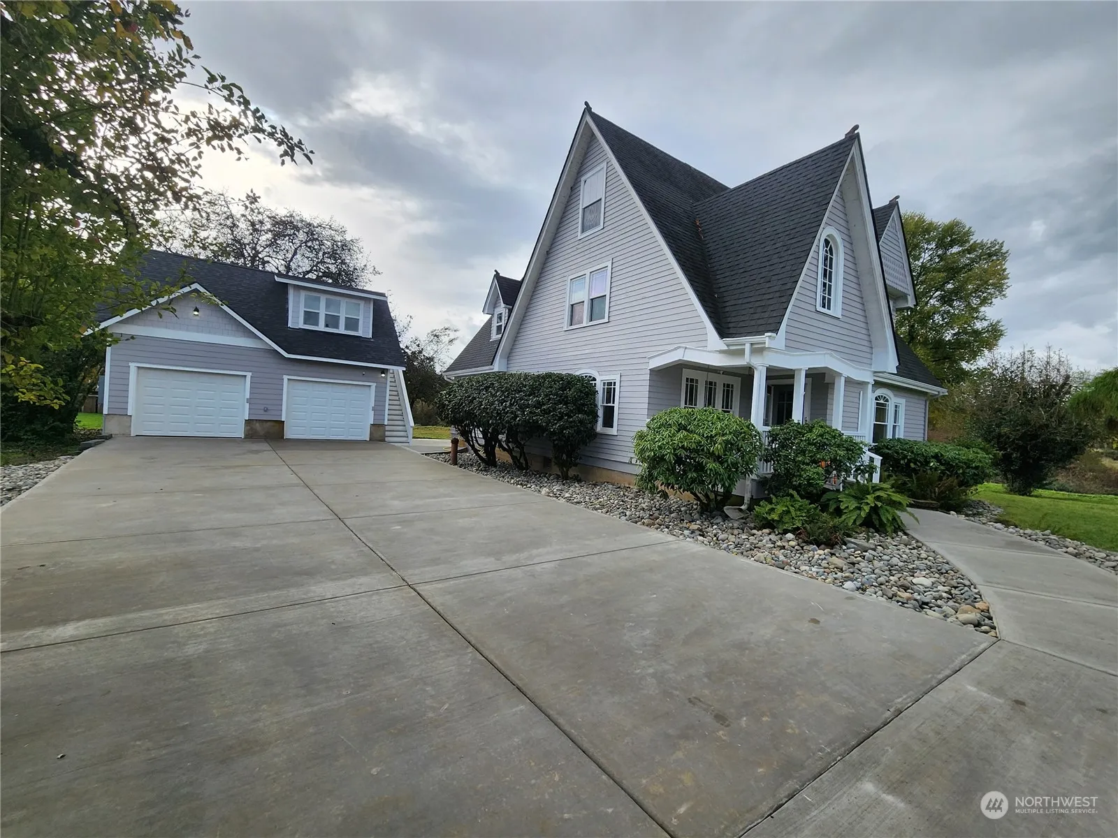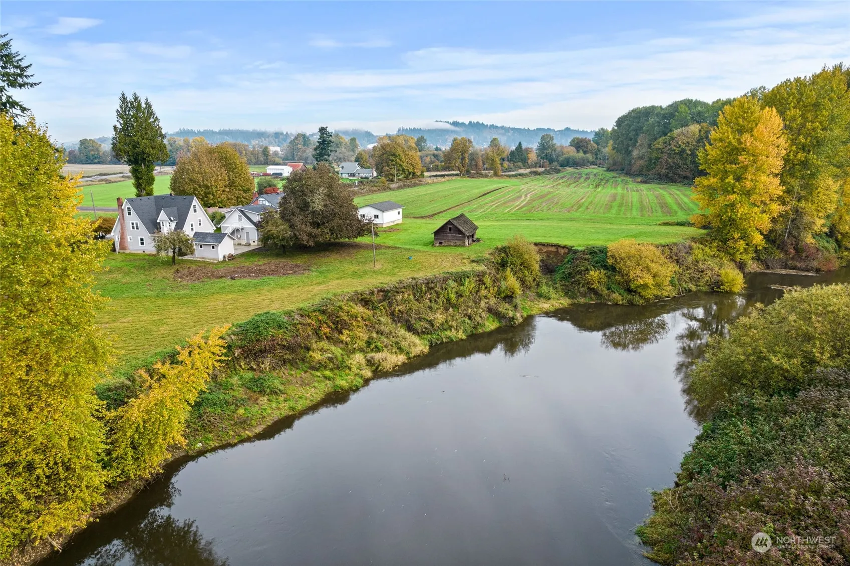 Welcome home to this one of a kind modern farmhouse on the river. Excellent location, just a half mile from I-5, Walmart, Home Depot, etc, yet secluded on a 2 acre property with 272 feet of riverfront property. Large home w/ 2 1/2 stories + basement, newly constructed garage w/ mother-in-law suite, balcony on second floor, finished 16’x12′ outbuilding, theater room, gym, 35’x30′ patio, and 125’x24′ driveway. New roof, windows, dual well water treatment, waterproof flooring, 2nd kitchen and much more. Property has well and septic for self-sufficiency, fertile farmland, and lots of old-growth rhododendrons, apple & pear trees, walnut, and rose bushes. DADU could bring potential rental income. Imagine swimming & fishing from your own backyard!