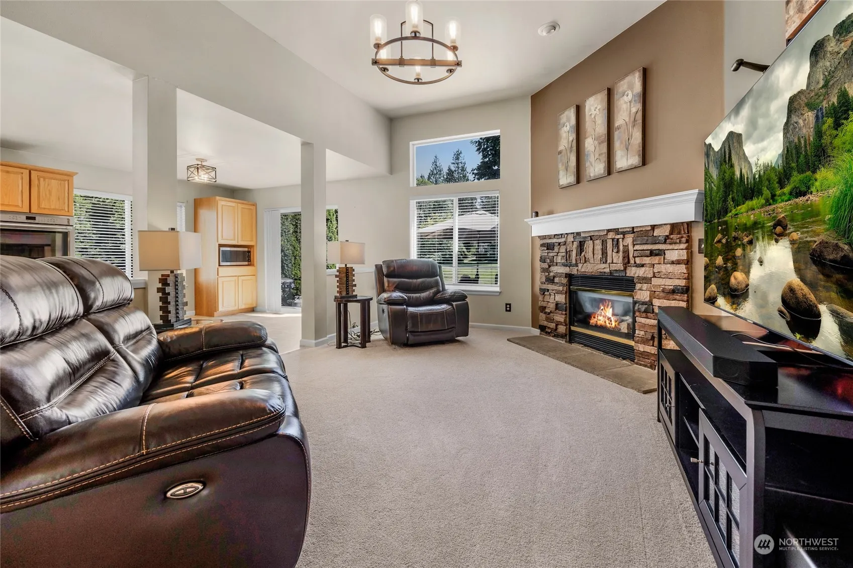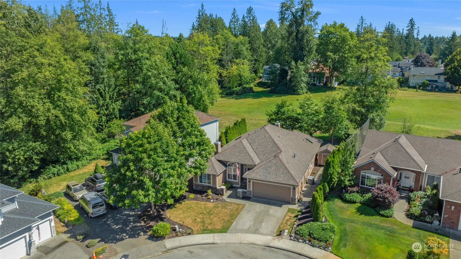 Welcome to the 1st fairway at Gleneagle Golf course. Beautiful MUST SEE Rambler on one of the best streets in Gleneagle. 3 bedrooms and 2.5 baths with almost 2100 sqft of open concept living, including a large living room & family room. Vaulted ceilings & plenty of natural light throughout. Kitchen highlights SS apps, double ovens, island & dining area. Two bedrooms along w/ a large primary suite + ensuite bath, & a spacious office/den. Enjoy summers w/ A/C & winters w/ double fireplaces. Relax out on the patio overlooking the golf course. Roof 5 years old, Carpet 2 years old. Large 2 car garage & storage shed. Located across from a beautiful park. Hands down the best buy in all of Gleneagle at the moment. Preinspected.