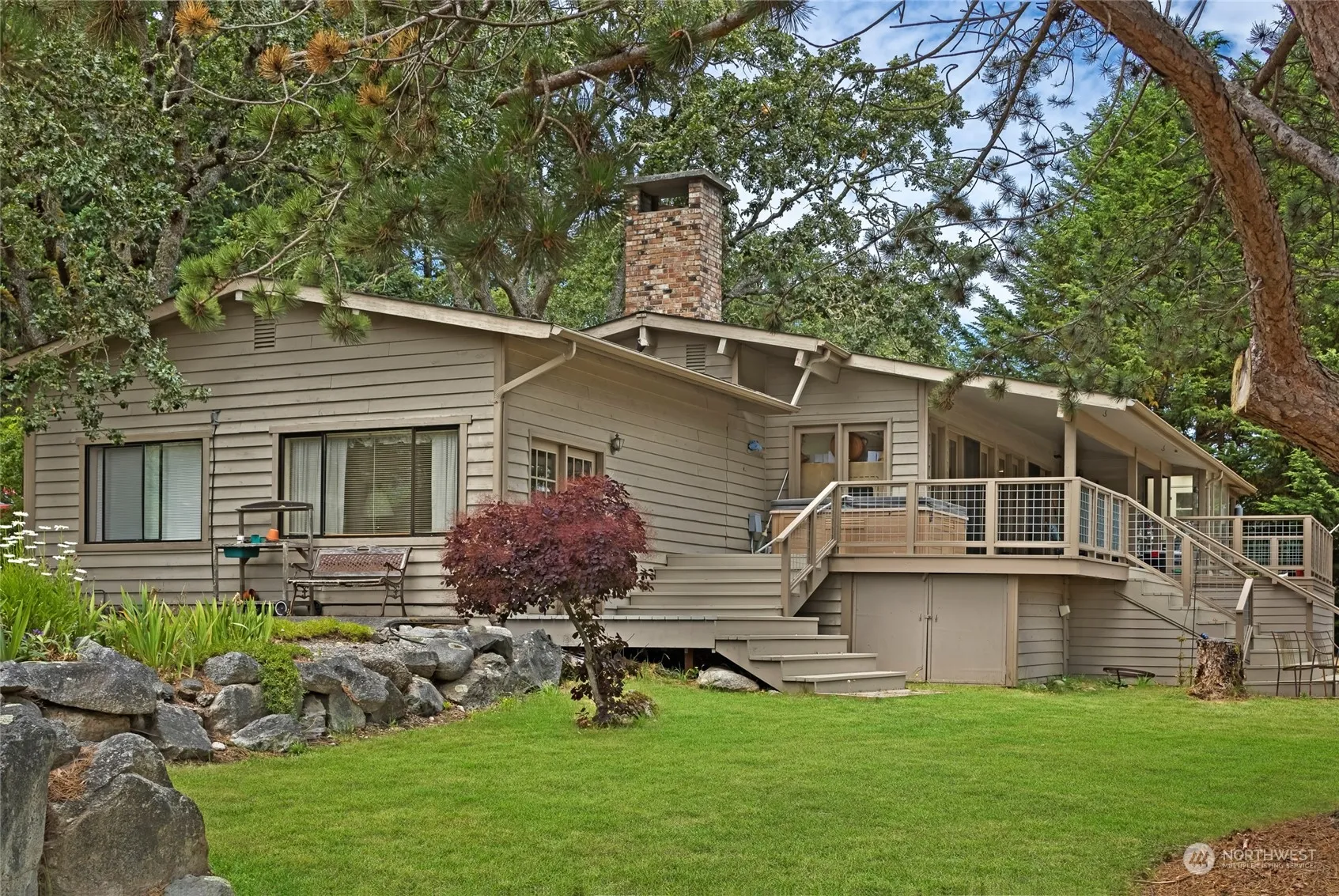 A golfer’s delight! 2 bedroom, 2 bath Panabode home backing up to the San Juan Golf & Tennis Club on the 7th fairway. Spacious and bright living room with vaulted ceilings, fireplace, skylights and doors to the partially covered multi-level deck. Kitchen with center island and solarium eating space to watch the golfers take their swings. Lower level second bedroom, 3/4 bathroom and bonus room with glass door to lower deck. Scenic views over the golf course to Mount Baker, the Cascade Range and a peek-a-boo view of Griffin Bay. The serene and gently sloped property is shaded by mature Garry Oak trees with space for a garden. Additional features are a bonus room, attached 2-car garage & a hot tub. The perfect spot for rest and relaxation!