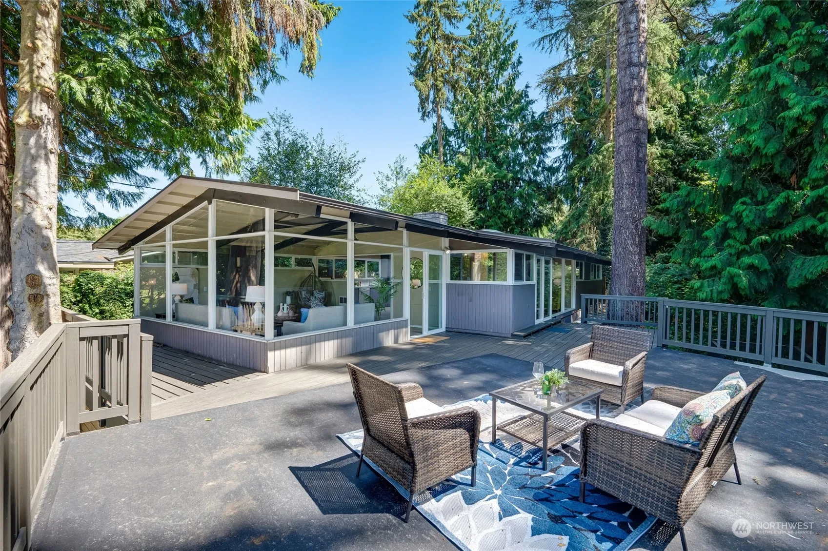 A true mid-century in the heart of Talbot Park! This single-story home is perched on a 1/4 acre lot to maximize privacy & views. Large deck w/spectacular views of Puget Sound & Whidbey Island Vistas at Sunset! Enjoy sunsets for a lifetime & make this home your own. The floor plan orients to ensure living rooms, kitchen share the advantage of the breathtaking views. This fantastic home features original vaulted wood beam ceilings throughout. Clerestory windows & huge skylights create a luxurious atmosphere w/lots of natural lighting. Maple hardwoods grace the floors throughout & double door entry w/original stone inlayed pavers display this homes original architecture. All of this on a 1/4 acre lot w/a creek running through it.