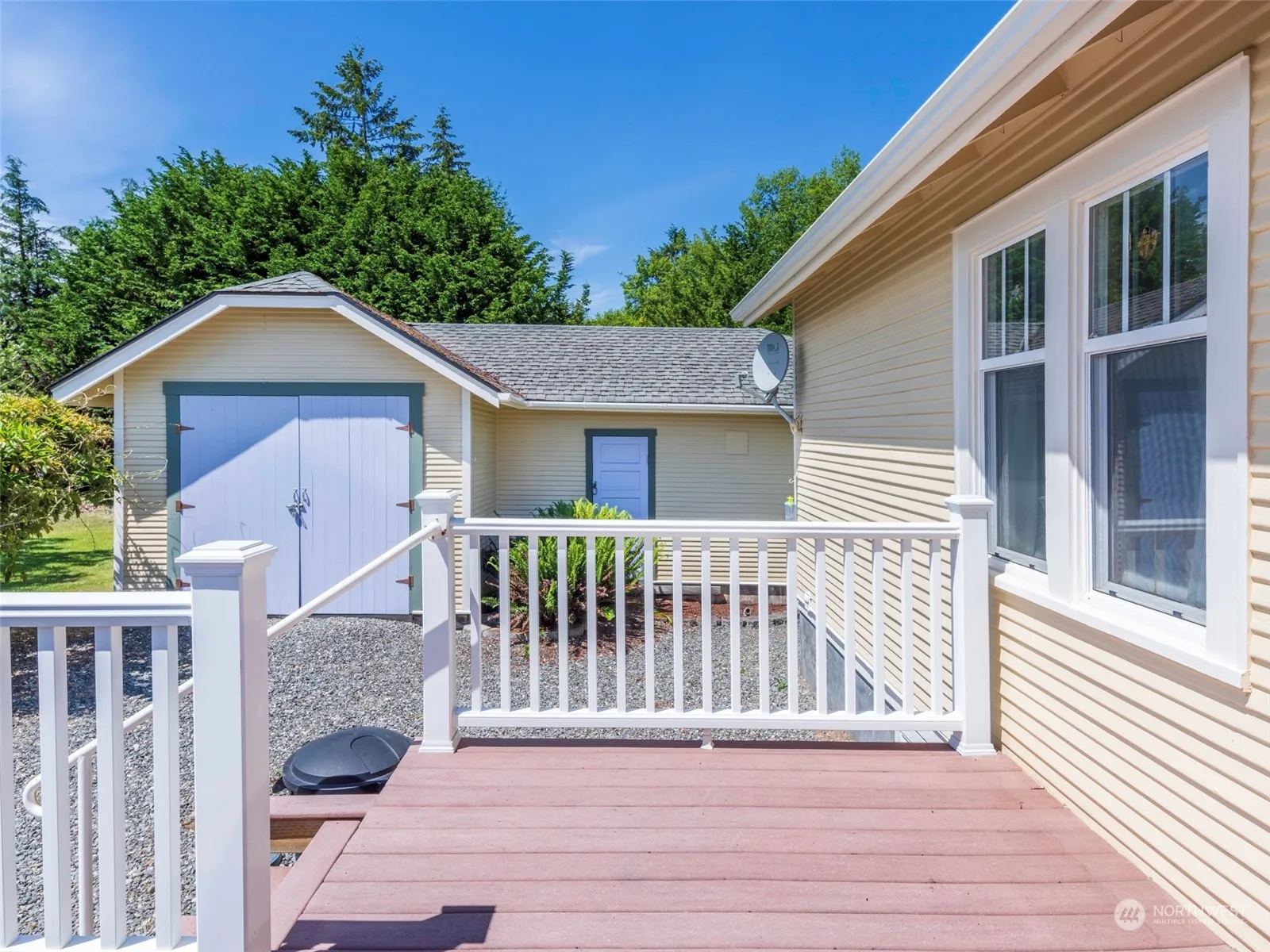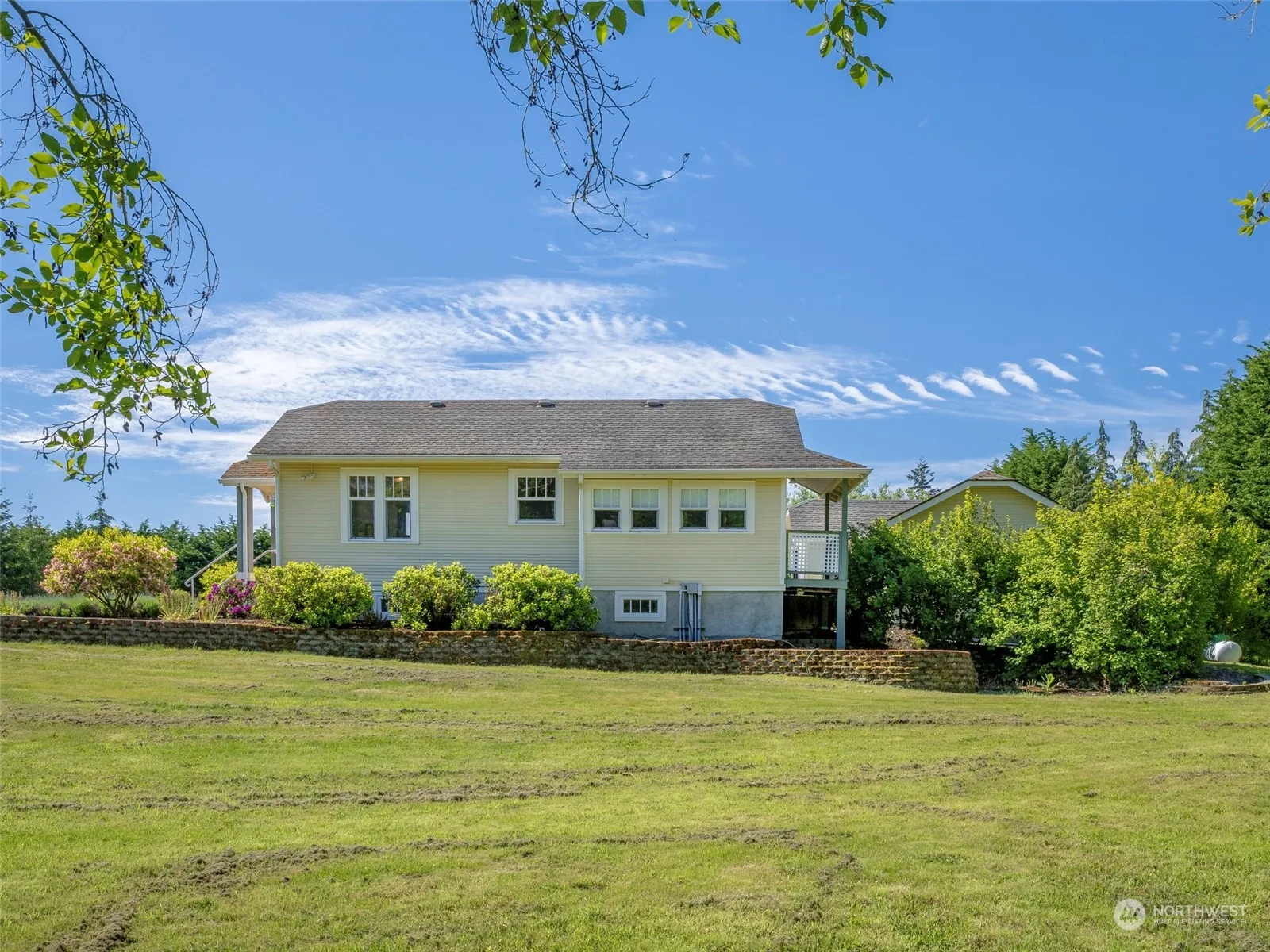Unique & beautiful park-like setting, secluded yet accessible! Attractive, remodeled cottage, 2 Bedrooms, hardwood floors, propane fireplace on brick hearth, wall heaters. French doors opening onto south-facing deck. Unfinished basement, separate garage/shop. Three sides of the property lined by mature trees create privacy and a windbreak. Fruit trees. Separate studio with electricity and metal roof has ADU potential. RV pad with septic, water, electrical hook-ups. Potting or yard shed plus a large, airy storage/workshop shed. Dungeness Irrigation ditch on north side of cottage is a tree-lined, protected Class III stream. Large propane tank is leased.