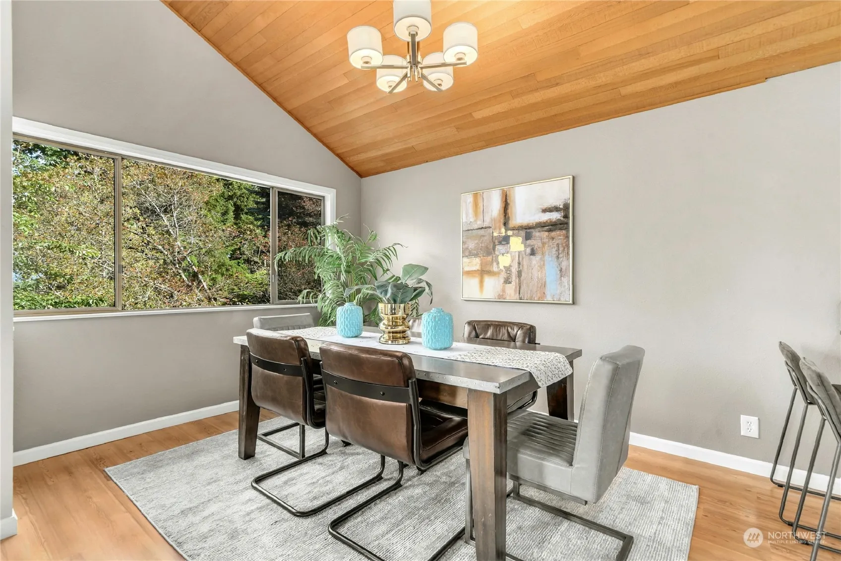 This stunning Northwest modern home boasts beautiful, vaulted wood ceilings and oversized windows that flood the space w/ natural light. Main floor features a cozy living area w/ fireplace that opens to a balcony and flows into the dining area and kitchen, complete w/ gas cooking and ss appliances. Adjacent to the kitchen is an amazing sunroom, ideal for your indoor garden. Upstairs, you’ll find a large primary suite w/ additional sunroom & attached bath, plus 2 more bedrooms & bath. The lower level includes a second living area, 4th bedroom & ¾ bath. 2-car garage offers ample space and off the laundry room is a spacious storage area. Easy access to Eastside and Seattle. Pre-inspected for your peace of mind and A/C for year-round comfort!