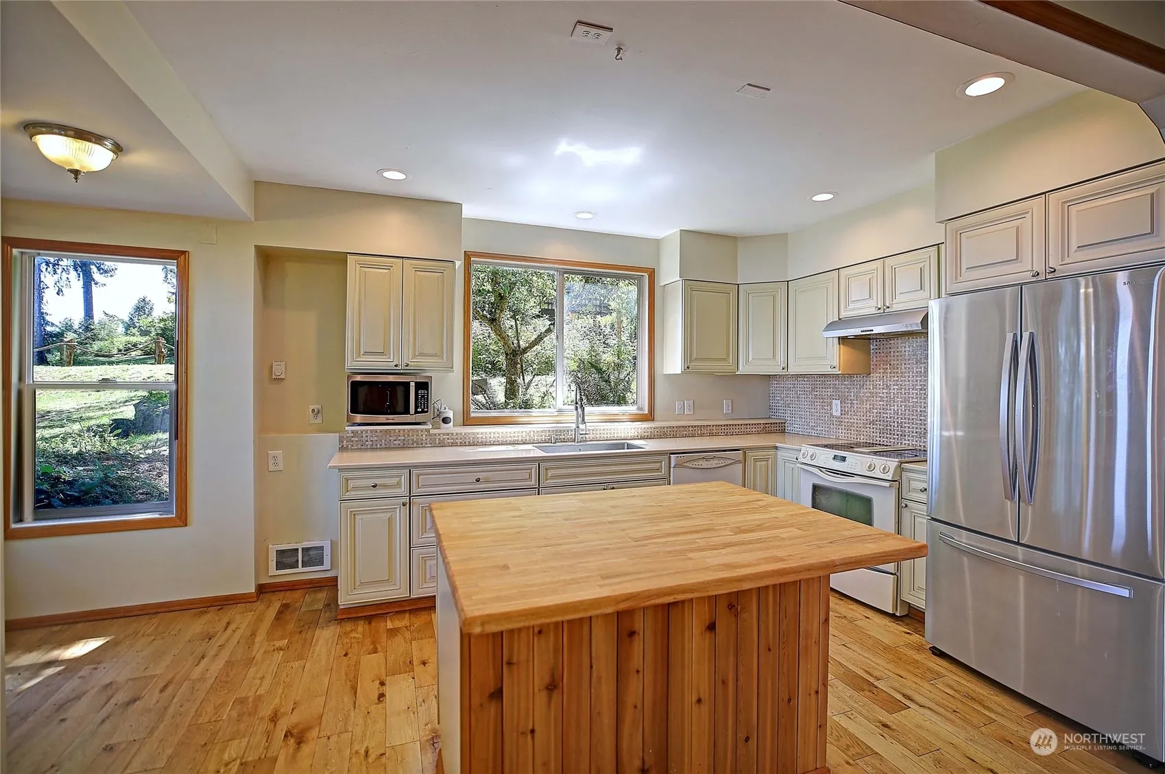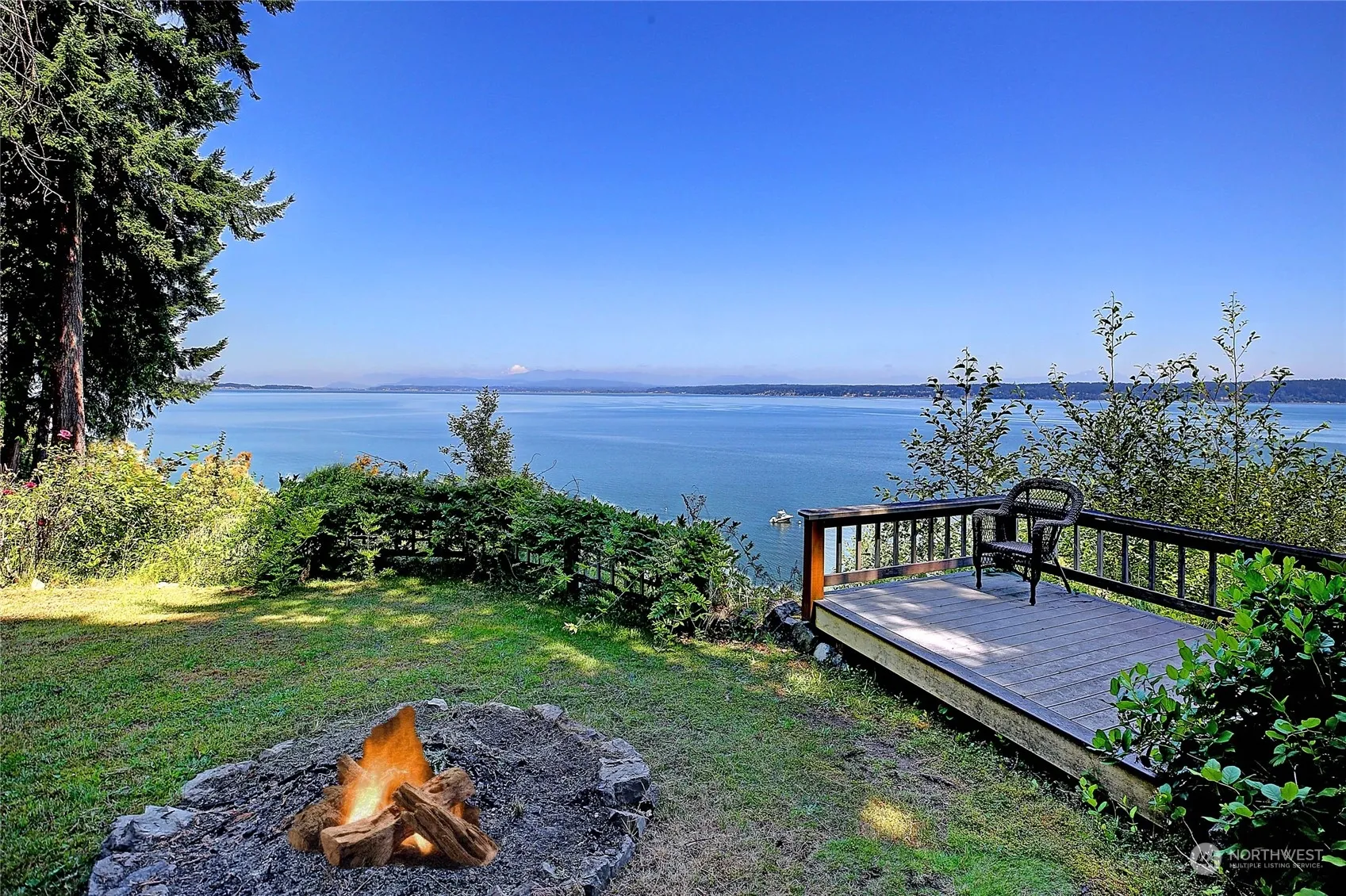 Waterfront Bluff Home with Beach and Privacy, on 125′ frontage and .86 Acre! Excellent single-level home and detached shop w/ extra parking. Big yard, gardens, and private timber for your Island Getaway. First time on market, this is a special property that has been well-cared for. 2 bed/2 bath plus den. Updated island-kitchen and hardwoods, stone wood burning fireplace and tile bathrooms. Nearby private path to community beach, for year-round enjoyment. Room for SHOP, ADU, No HOA. Minutes to shopping and restaurants, easy commute to I-5 and Seattle. Great investment, turn-key and ready to enjoy. Welcome to the Beach!