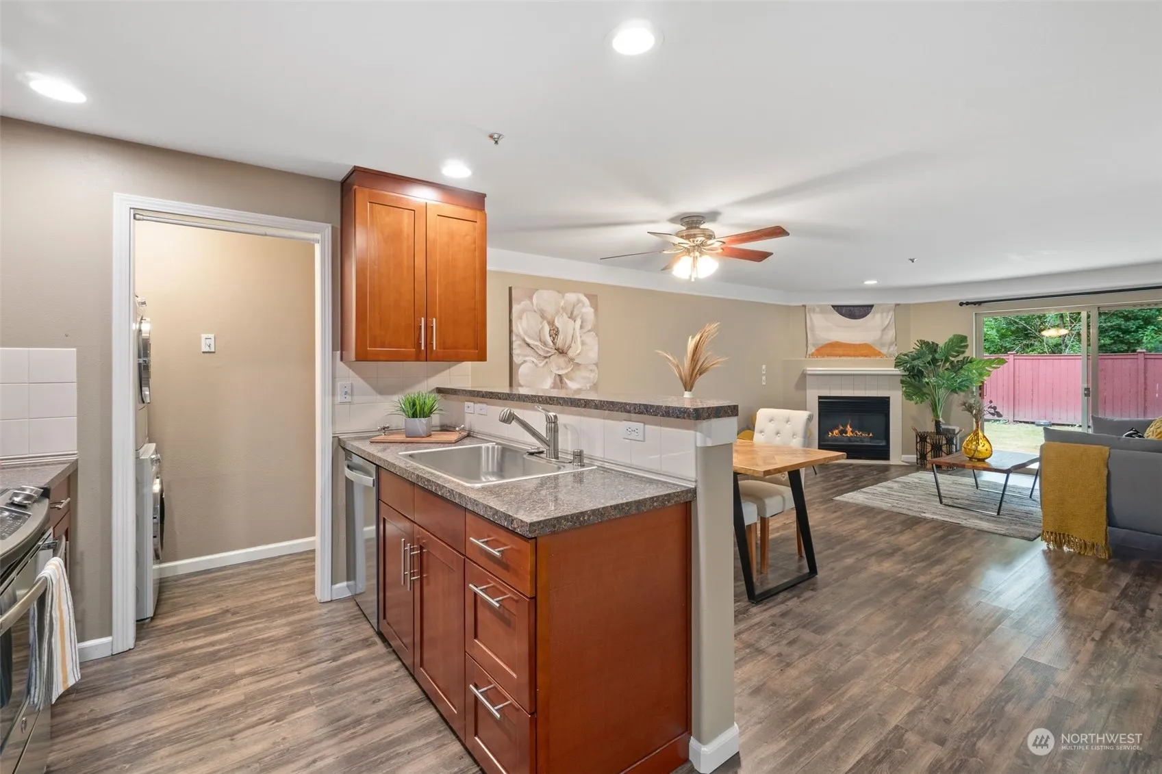 Welcome to your beautifully updated and FHA approved condo, perfect for modern living! This charming home features SS appliances, refreshed interior paint, elegant vinyl plank flooring, and updated bathroom, creating a warm and contemporary look. Cozy up by the gas fireplace in the spacious living area, adding warmth and ambiance to your home. Use the 2nd bedroom as a guest room or WFH office. Includes detached garage for parking and add. storage. Located near Southcenter Mall for all your shopping and dining needs. Commuting is a breeze with major highways I-5 and 405 just minutes away. Plus, enjoy being close to SeaTac Airport for your travel needs. Don’t miss the opportunity to own this move-in ready gem in a prime location!