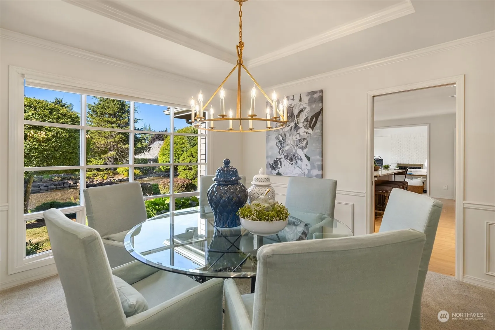 Welcome to The Lakes! This light and bright one-level home features high ceilings and windows abound looking out to beautifully landscaped grounds on the over 1/3 acre including 157 feet of lakefront. Designed to gather as well as find quiet, there are 4 bedrooms and 2.5 baths, including a primary en suite. Linger in the spacious chef’s kitchen with a breakfast nook and an adjoining family room with a gas fireplace. Relax on the deck or the wrap-around patio, with grass leading down to the water. Additional features include a flex room, ample storage, and a 2-car garage. This fabled neighborhood has shortcuts to both Lakeridge Elementary & Islander Middle School! Near shopping, MICC, parks with 6 miles of trails.