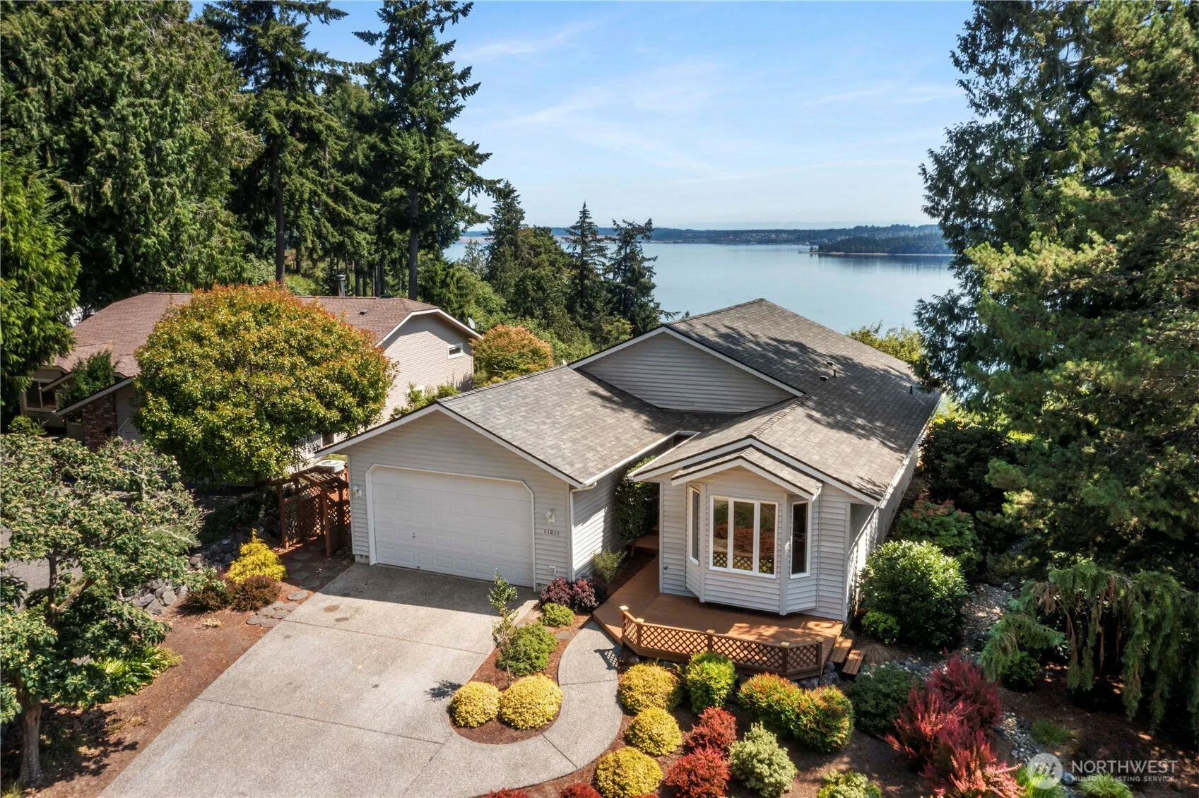 Rare Seaview Drive Gem! This custom Anderson Island 3 bed 2 bath rambler offers breathtaking sunrise views w/majestic Mt. Rainier as your daily backdrop from a picturesque high bank 0.43 acre property. Step inside & be captivated by expansive Sound views framed by floor-to-ceiling windows & a dramatic 17’ vaulted ceiling This meticulously maintained 1-owner home features high-end touches: solid maple cabinetry, Corian counters, incredible custom built-ins, walk-in pantry, mudroom, & a heated 10’ garage. Indulge in spa-like relaxation in the primary en-suite’s jetted hot tub. The spacious deck off the great room & primary bedroom invites wildlife watching & ferry views. All Riviera HOA amenities included. This Seaview Drive dream won’t last!