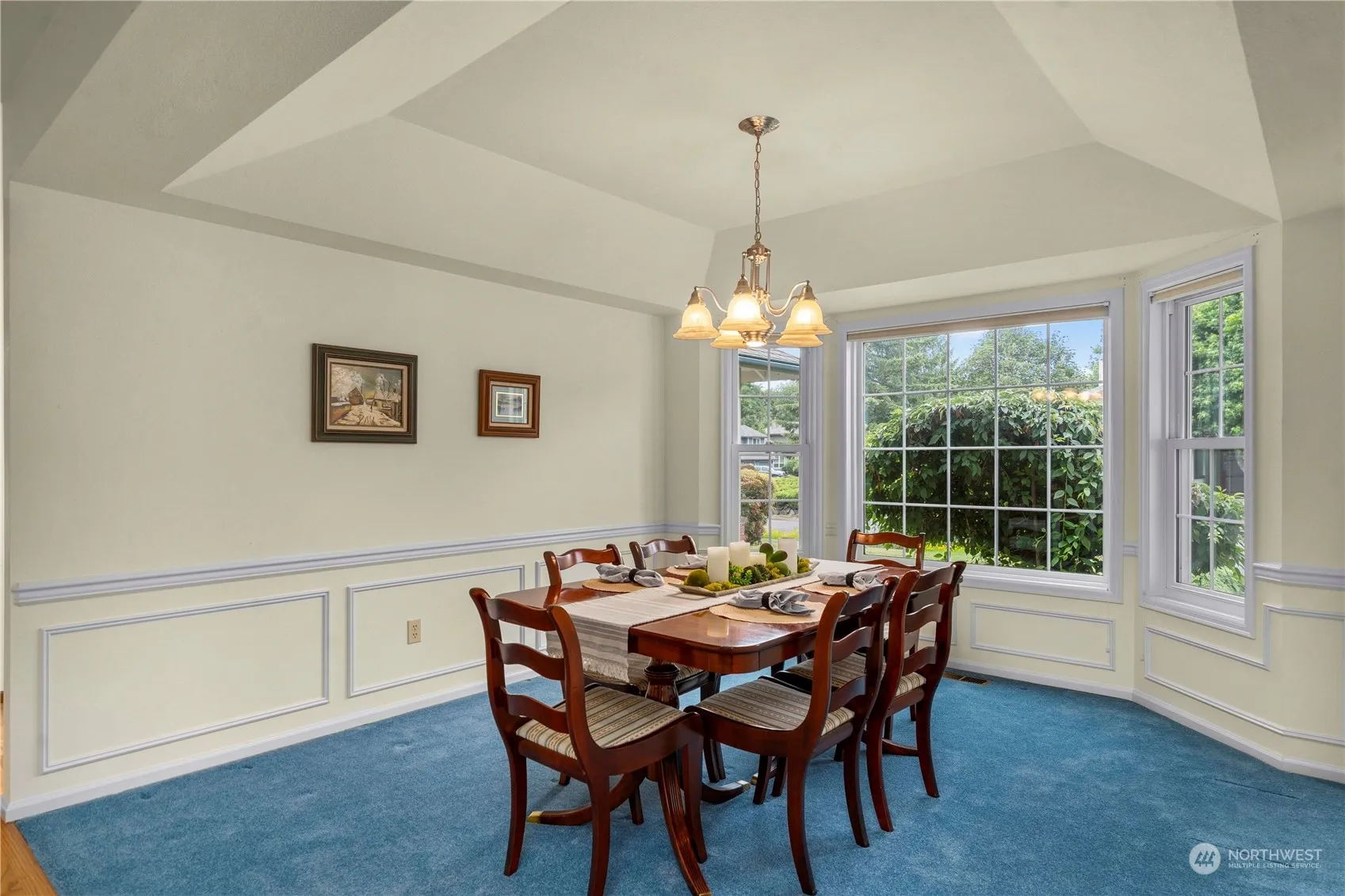 Welcome to Maple Downs, where quality homes and large lots meet the natural beauty of Cedar Downs. This expansive 2,460 square foot rambler sits on a serene corner lot in a quiet cul-de-sac, offering an open floor plan with an island kitchen and walls of windows that frame your private yard. The kitchen features an eat-in dining space and a slider leading to the entertainment patio. Immaculately maintained and move-in ready, this home includes a spacious owner’s suite with a cozy sitting area, walk-in closet, and a vaulted-ceiling bathroom. Formal dining features wainscoting, sunken living roof with fireplace. Additional highlights include generous bedrooms and a main bath. Enjoy nearby trails, lakes, parks, and the excellent Tahoma schools