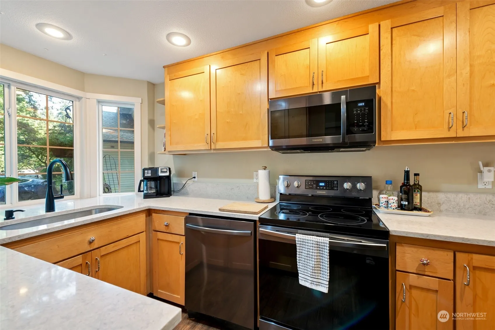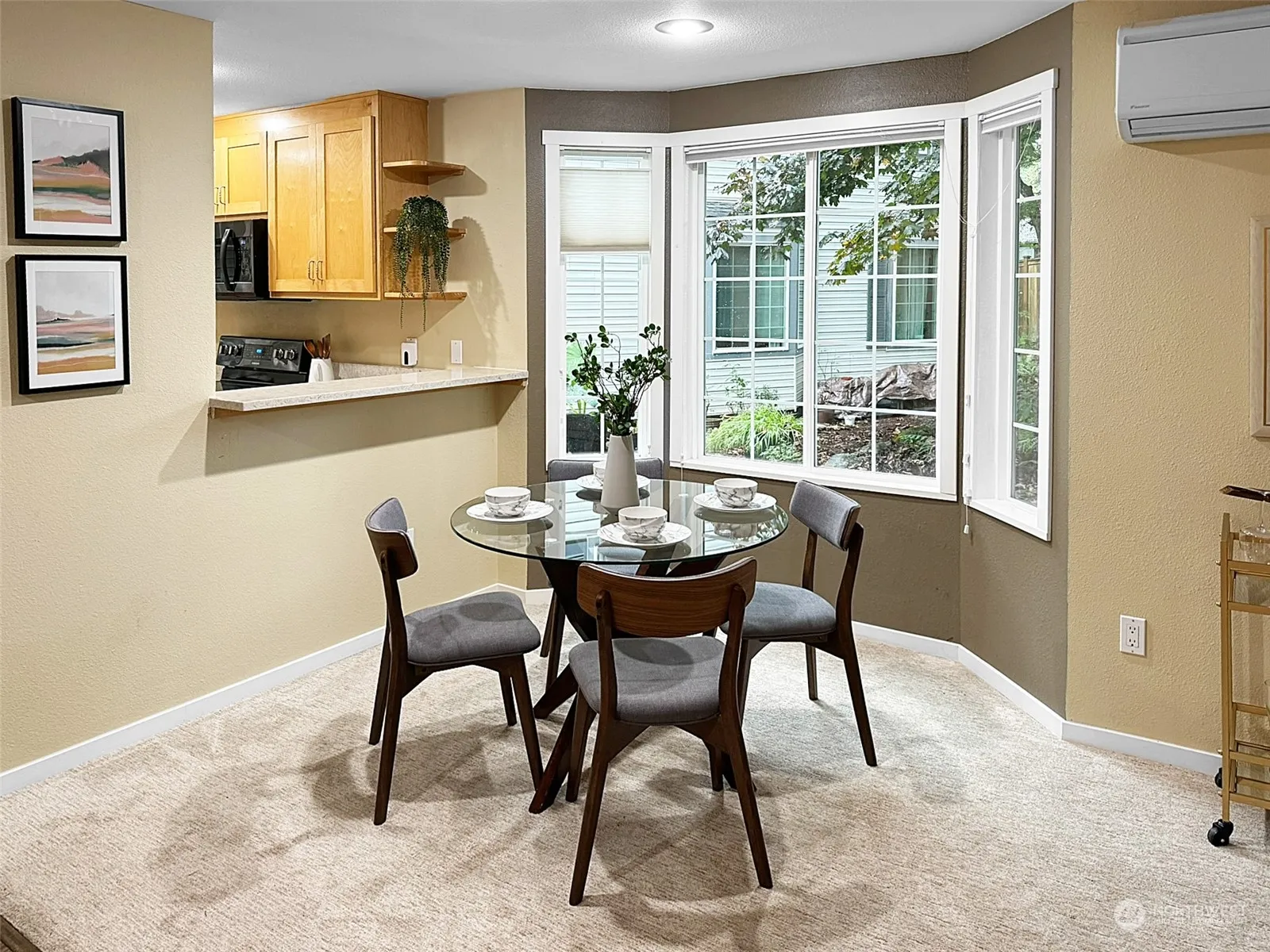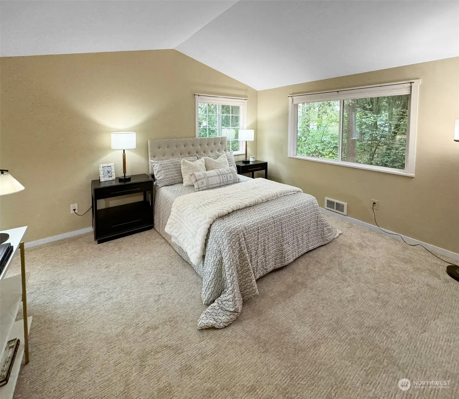 This fantastic end unit townhome at Harpwood Lane boasts many updates including new kitchen counters, tile, flooring, AC and paint. The home is filled with natural light and is very private. The main floor features an open concept and optimal flow between the kitchen, dining, and living rooms; a large bay window and cozy gas fireplace add to the ambiance and create a space that is great for entertaining. Upstairs you will find 3 br. and 2 ba., and a master suite that features vaulted ceilings and a private bath. Additional features include a covered rear patio and the guest bath features a walk in tub. Great access to I-5, Lake Washington and much more. Motivated Seller. Don’t miss this great opportunity!