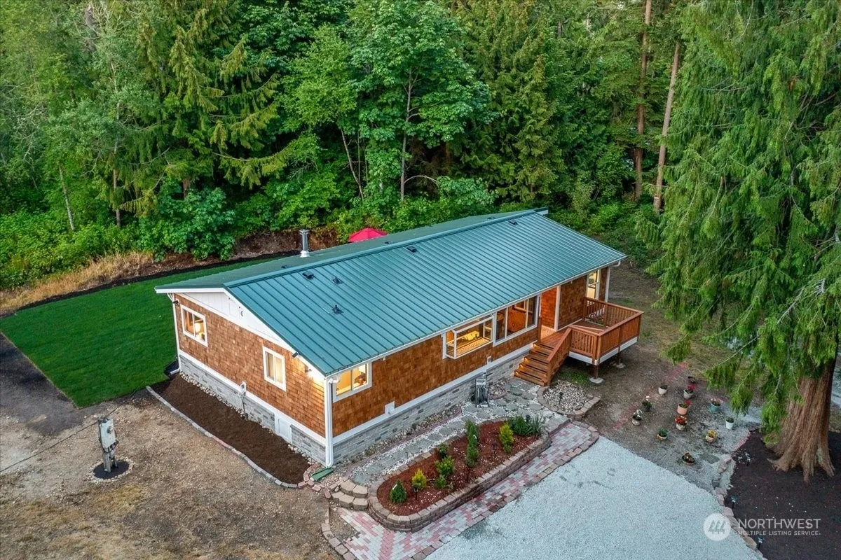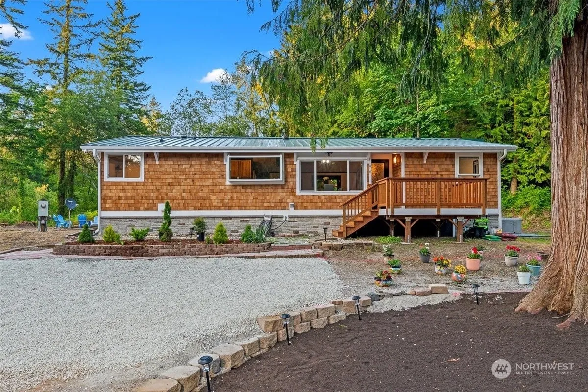Discover tranquil living on nearly an acre of private land with this beautifully updated home and modern guesthouse, both active and highly successful short-term rentals. Picture yourself dining on the deck while eagle-watching through the surrounding woods. Both the main home and the newly finished 588 sq ft ADU boast striking cedar siding. Recent upgrades include a new roof, fresh paint, updated countertops, a wood-burning fireplace, new windows, and a refreshed primary suite. Plenty of space for RV parking and guests. Located on a dead-end road just 5 minutes from ocean access at historical Cama Beach State Park, this serene retreat combines peaceful living with a lucrative rental opportunity. Come and experience it for yourself!