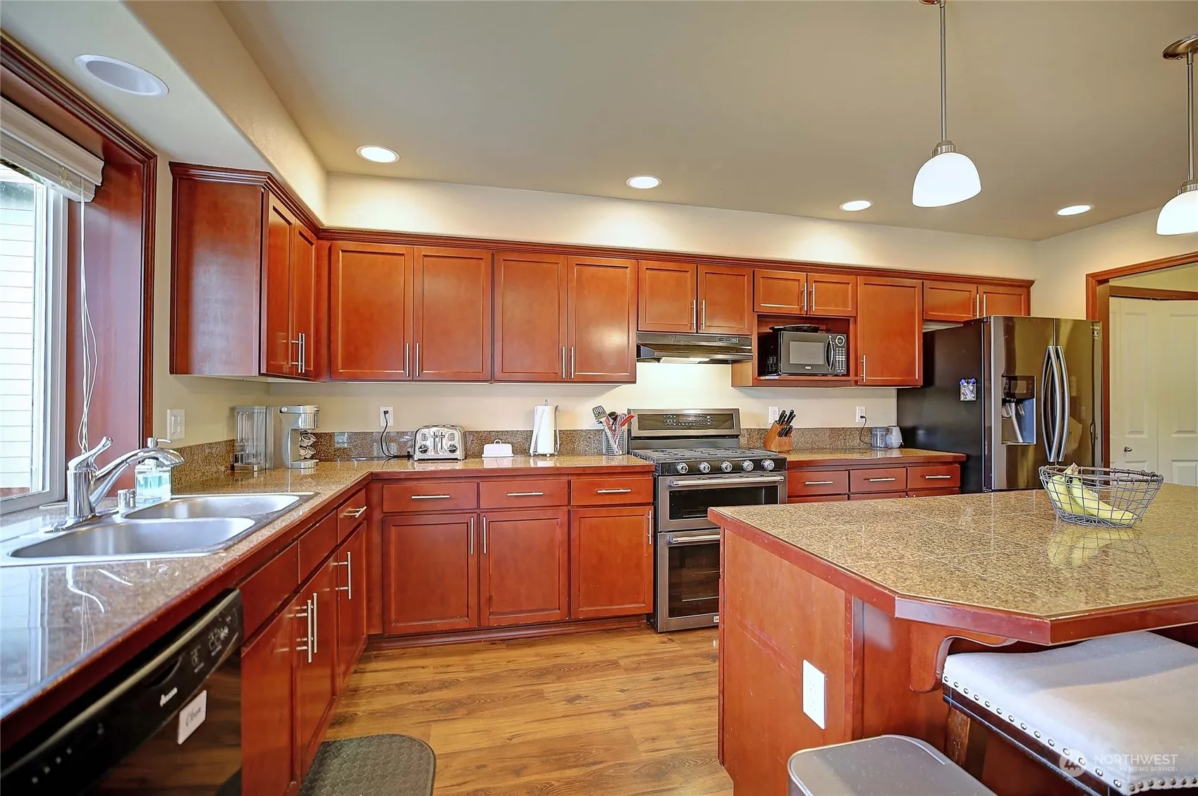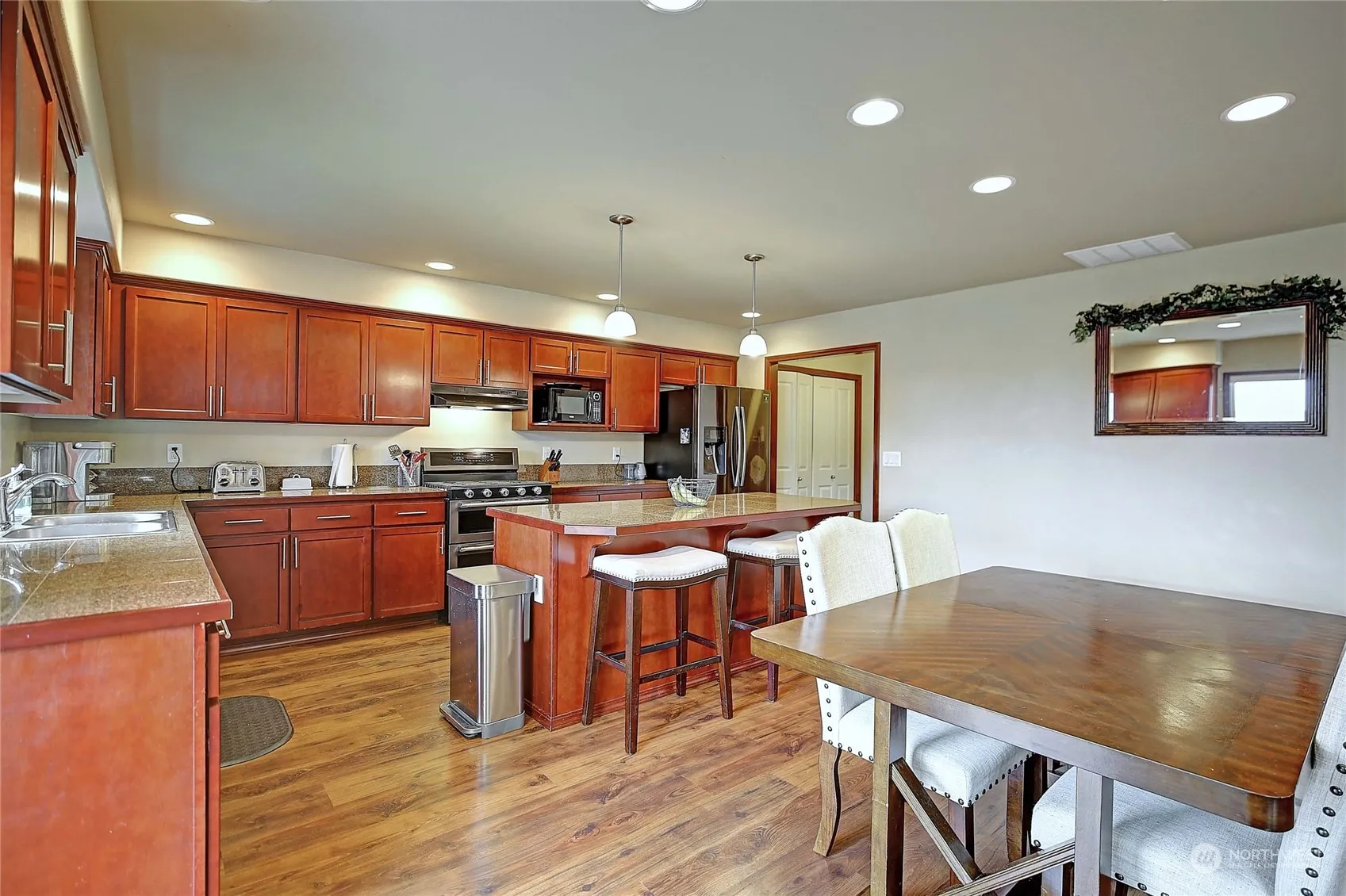 Beautiful 4-bedroom Copper Station home with light & bright open concept design. An abundance of windows fill the home with sunlight. Large, open kitchen with tons of storage & counter space. Kitchen features updated appliances & expansive island with eating space. Great room concept with new luxury vinyl plank flooring & access to back patio/fully fenced yard for entertaining. Main floor also has a large bedroom & half bath. Upstairs there are 2 additional guest bedrooms, laundry & full guest bath. Generous master bedroom with vaulted ceilings, 5-piece bath, spacious walk-in closet & western sunset views over Skagit Bay. Community Park & trails just down the block. Close to shopping, schools, parks & I-5.