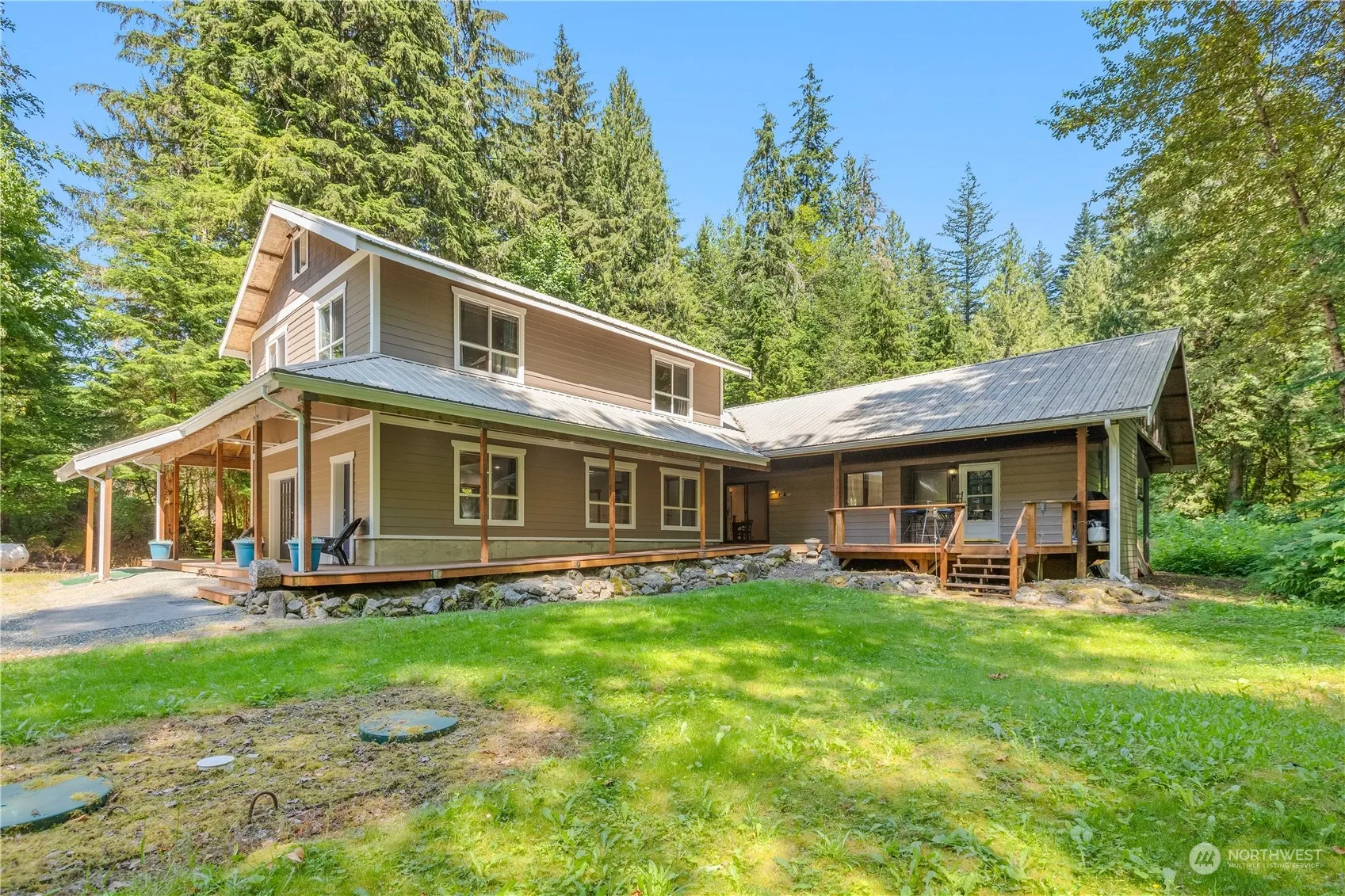 Unique Private Venue for Short Term Guests or peaceful retreat for therapeutic rest & relaxation. Options to host retreats, reunions, small weddings, bachelor/bachelorette parties, or ski parties. Walking path to creek & room to roam. Close to Mt. Baker activities, summer hiking / biking camping fishing & winter Ski/Snow Sports. RV Pad w/ electrical & water hookup. Heavy duty custom metal structure like you are at a ski lodge. Timber tech Trex decking & fresh paint. Tons of storage w/ clean & lighted attic. Jetted tub in new build upstairs. Enjoy solitude & babbling brook sitting in hot tub on back deck. Outside outlets & freeze proof water spigots galore. Large windows bring much light. 3 cabins. New gutters. Generator.