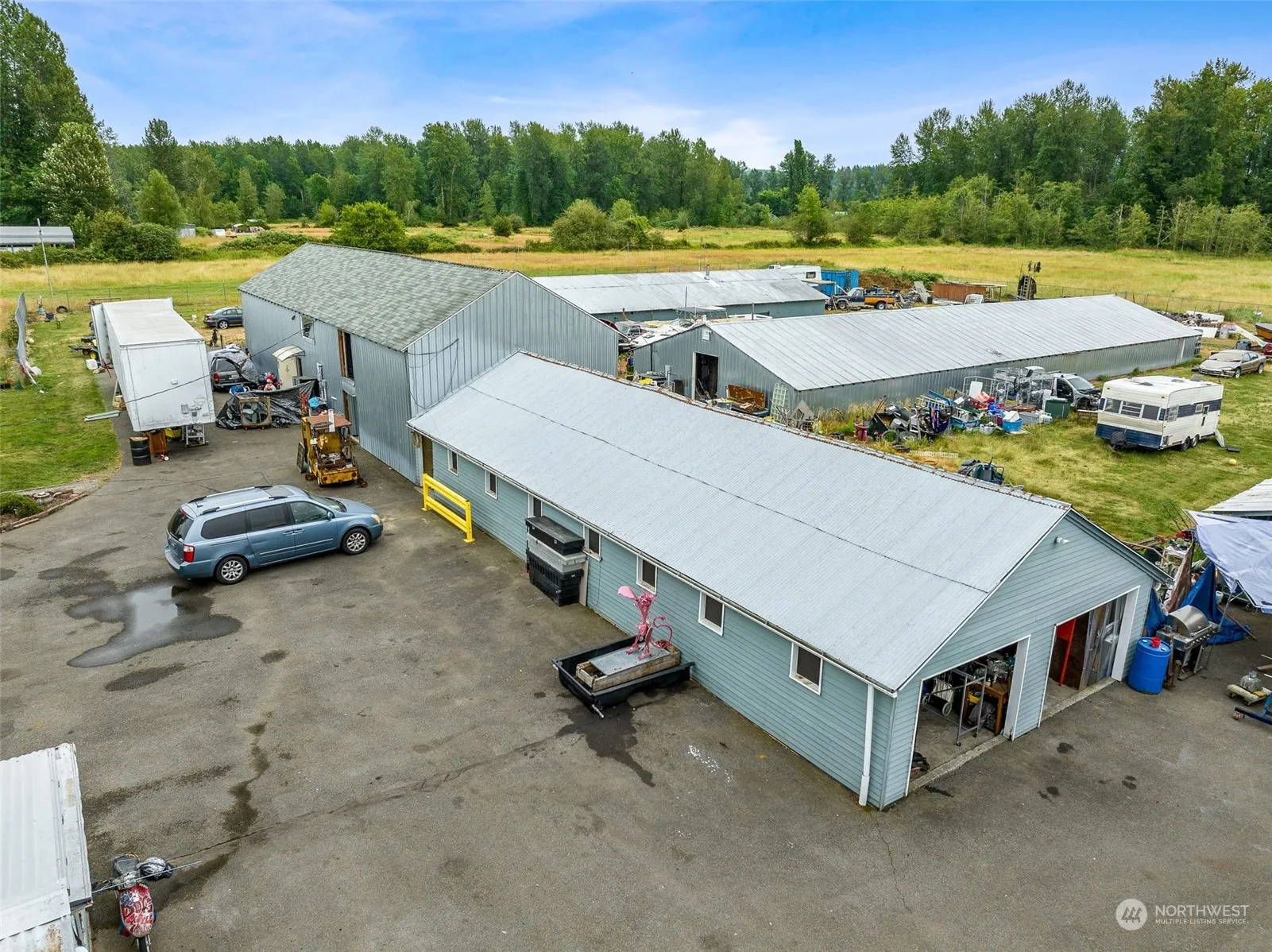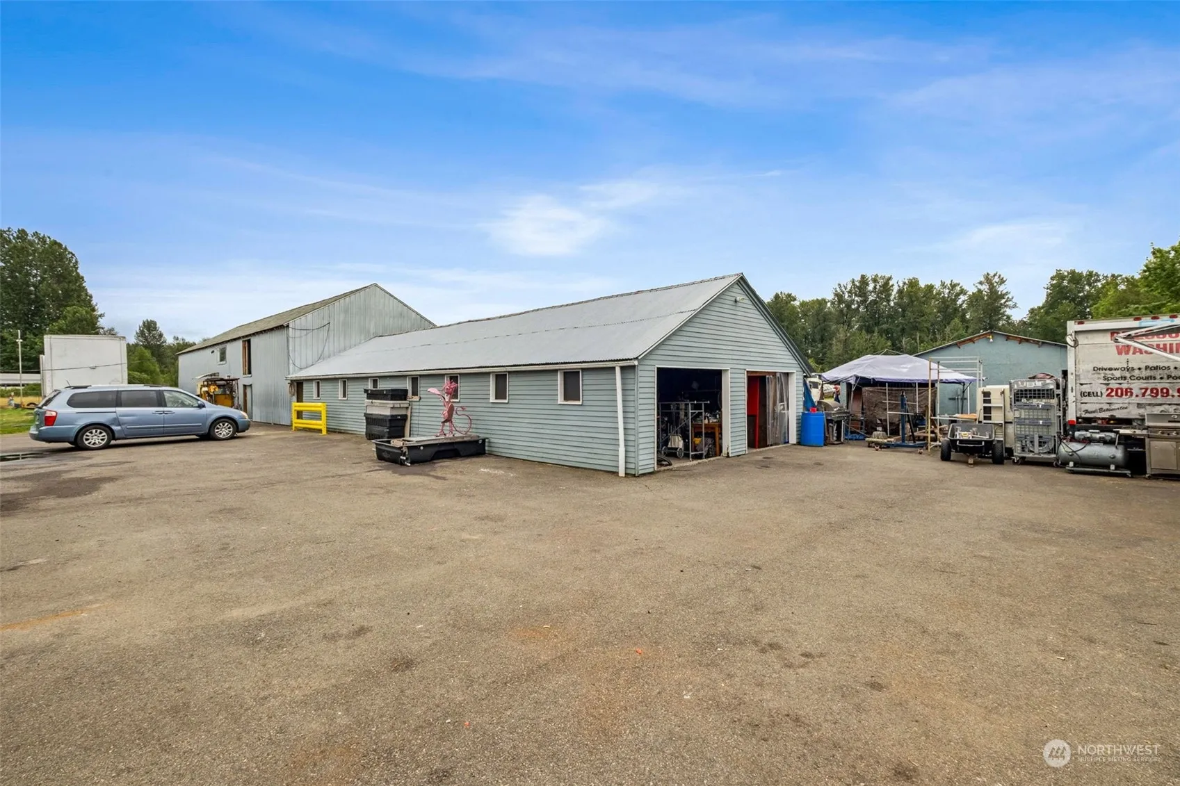 Exceptional Income Opportunity! This 14.66-acre property is located in a prime Buckley location featuring TWO homes & six renovated outbuildings, offering approximately 20,000 sq.ft of rental space. ADU|2 bed/1 bath/960sq.ft. Stunning Mt.Rainier Views! The property includes horse stalls w/feeders & an automatic watering system, rentable pasture & ample shop & storage space. Additional living quarters are available above the garage w/full bathroom & DJ booth. The versatile space provides endless possibilities for a potential event venue. Recent upgrades include newer wiring, insulated shop areas w/installed bathrooms, & outbuilding improvements. Don’t miss this rare opportunity to own a piece of paradise w/unmatched rental income potential!