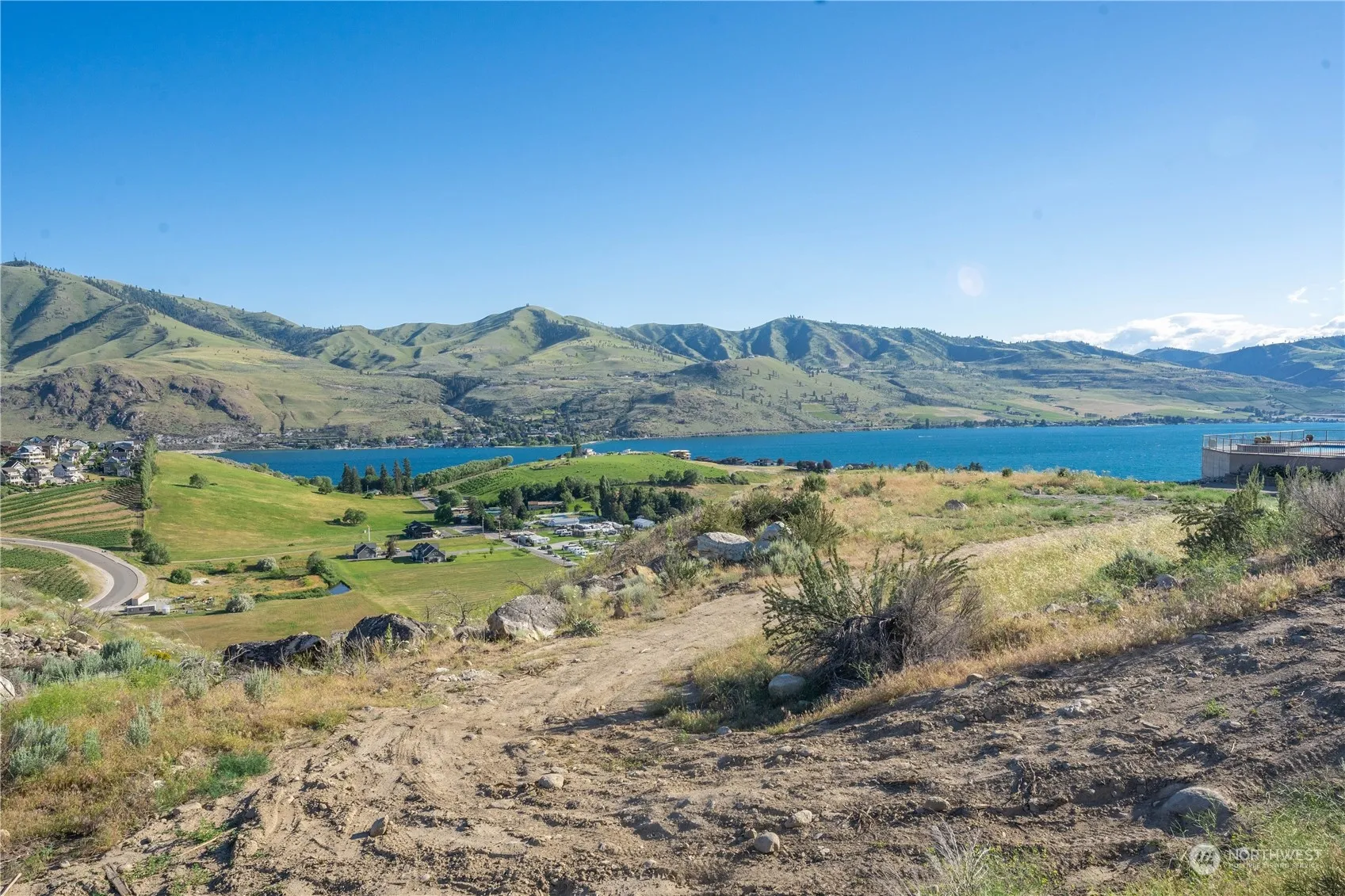 This Rare South Facing Bluff Lot in the Chelan Highlands provides stunning unobstructed views of Lake Chelan, the Butte & South Shore beyond. Over an acre for your custom or spec build in an area of Million Dollar Homes! Power, water & sewer available. Just a short golf cart ride to the Muni Golf Course & NEW restaurant “The Albatross” run by Karma Vineyards.Great walkable neighborhood & just minutes to downtown; wineries, eateries & 4 Season fun!