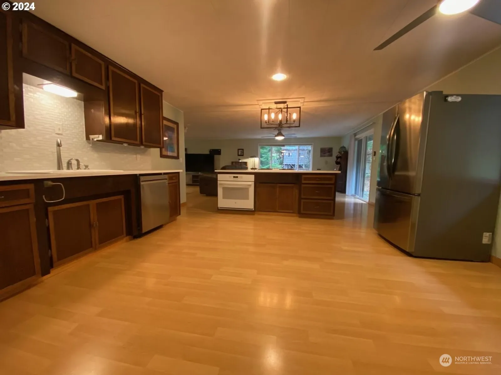 Wonderful open floor plan with views of nature throughout. Spacious Island Kitchen with propane cooktop, gorgeous main bath with walk in shower. Master suite has its own bath, 2nd bedroom complete with Murphy bed. Such a great home for entertaining or simply just enjoying the privacy. Cozy covered front patio with ceiling fan, Large Heated Garage/Shop, Covered RV parking plus more parking for all your toys & only minutes to the lake.