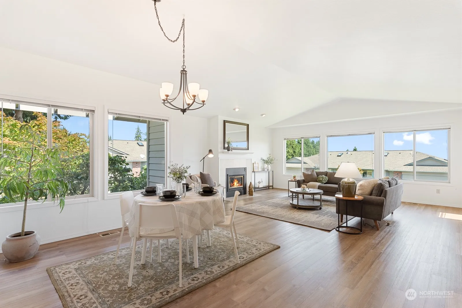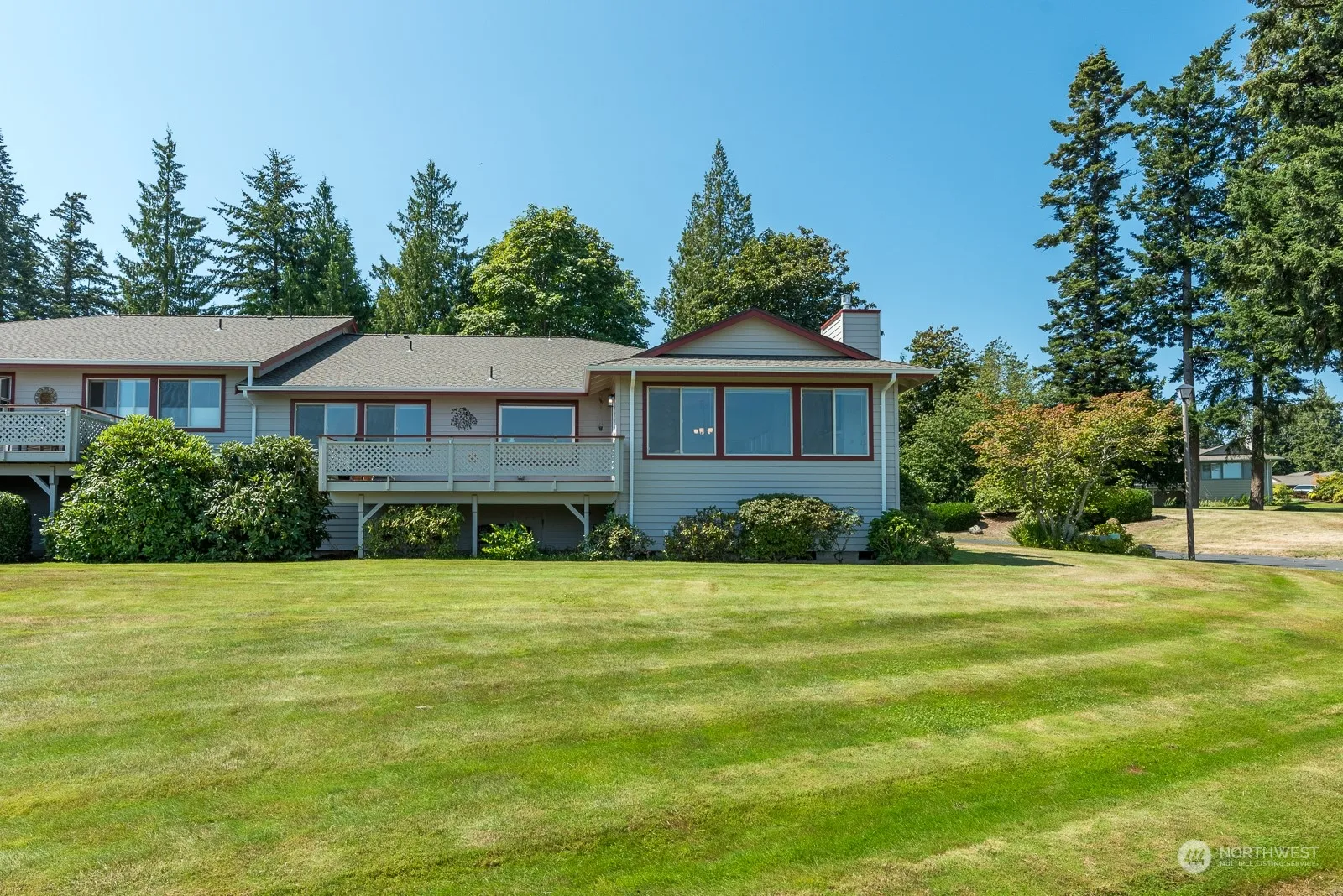 Light, bright & airy Creekside neighborhood retreat positioned on the corner. As you enter from the covered deck to inside-natural light floods every room, enhanced by vaulted ceilings & skylights. Spacious living room offers cozy fireplace, dining area, surrounded by larger windows giving views of Fidalgo Bay, Mt. Baker, lush community landscaping/greenbelt & back deck access. Open kitchen features newer paint, refinished cabinets, quartz counter, breakfast nook, garden window with views. The primary suite includes vaulted ceilings, perfectly situated for the views, ensuite 3/4 bath & walk-in closet. Finishing out the home are 2 addtl bedrooms, full bath, laundry room & 2car garage with more storage under home + community RV/Boat parking.
